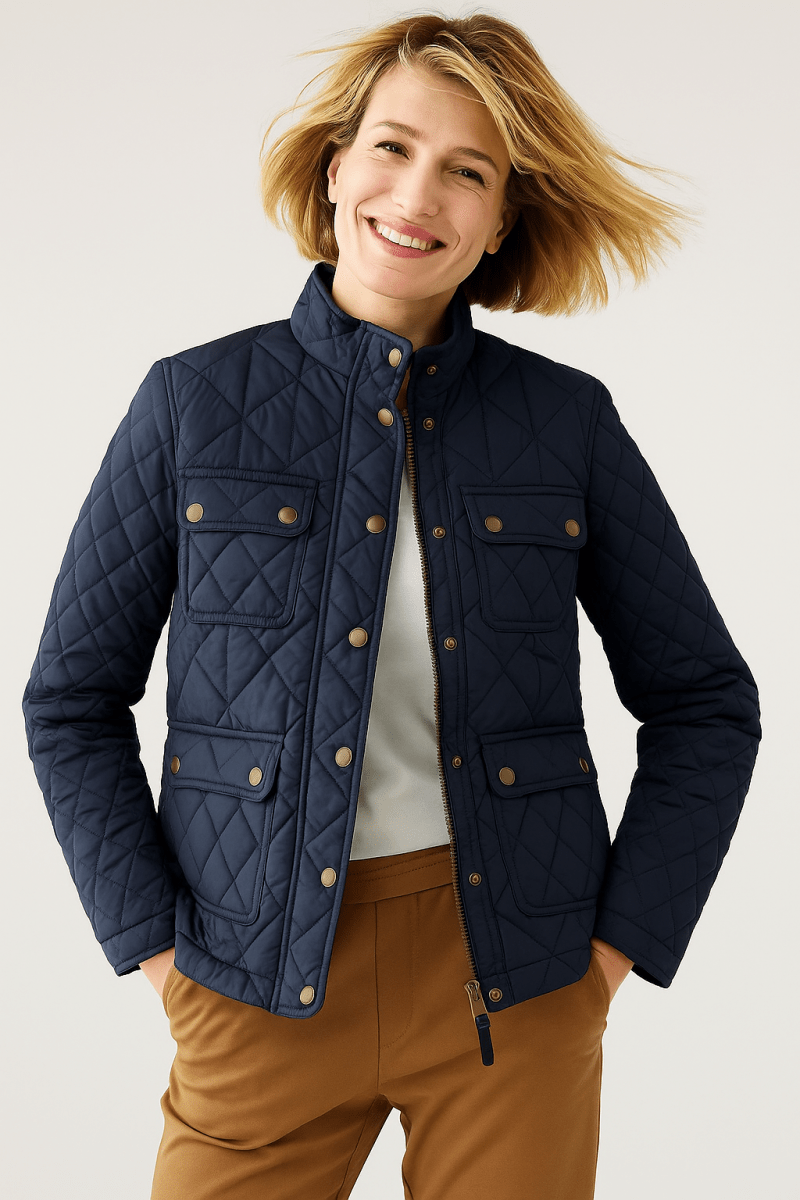 Quilted Puffer Jacket with Diamond Pattern-Size: M
