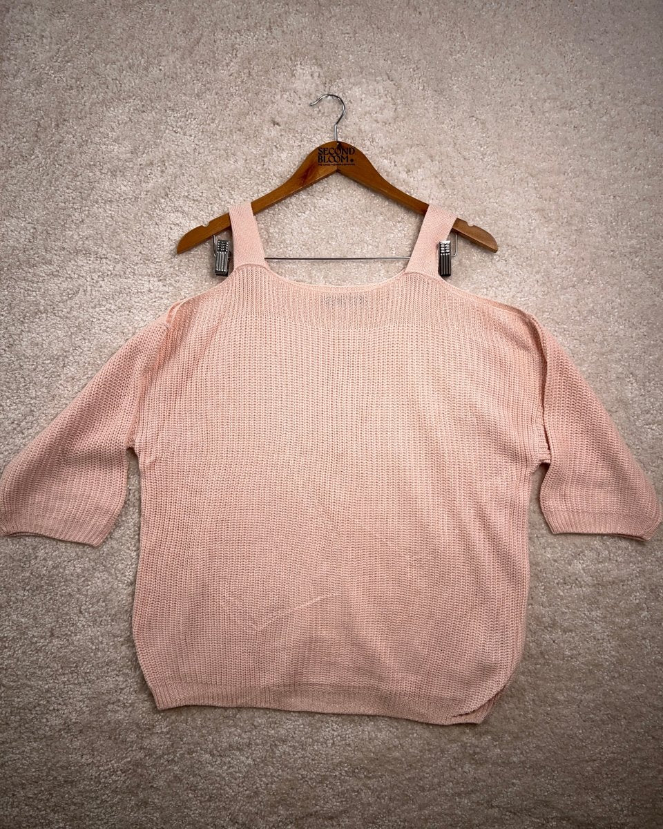 Open-shoulder Crochet Top in Blush Pink-Size: L