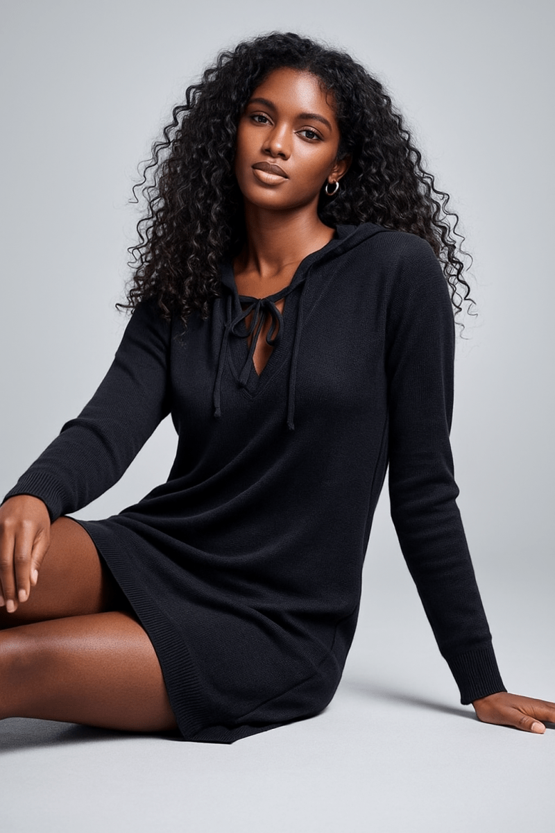 Long Hooded Sweater/Dress in Classic Black- Size: L