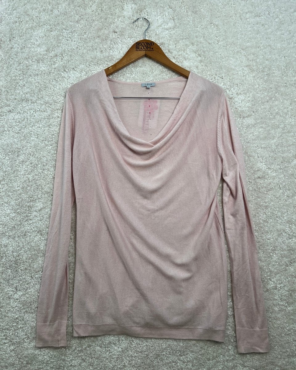 Long Soft Sweater with Draping Cowl Neck-Size: M