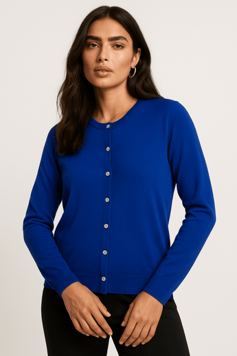 Pure Wool Cardigan in Royal Blue-Size: XXL