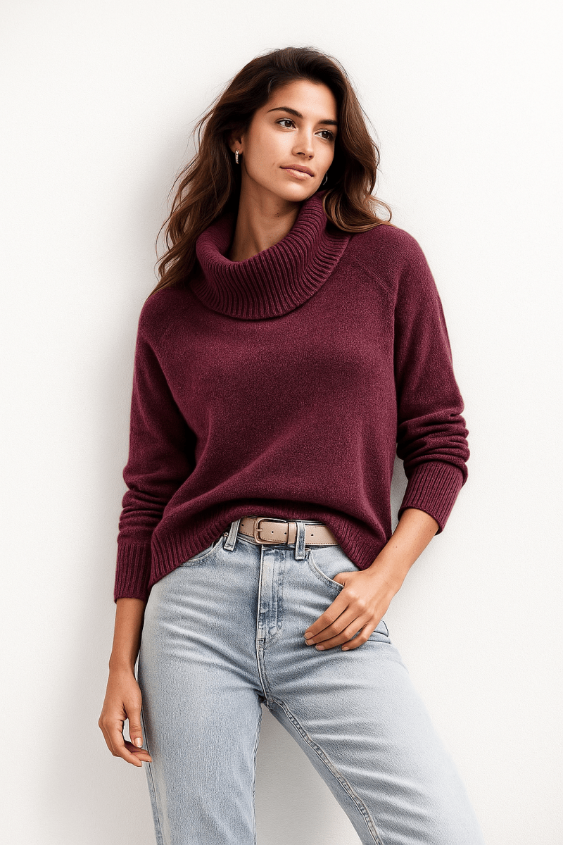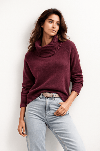 Wool Cashmere Sweater in Deep Burgundy-Size: S