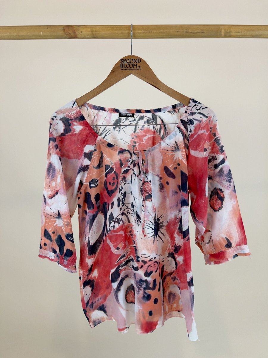 Gerry Weber Cotton Blouse in Vibrant Brushstroke Print - Size: L