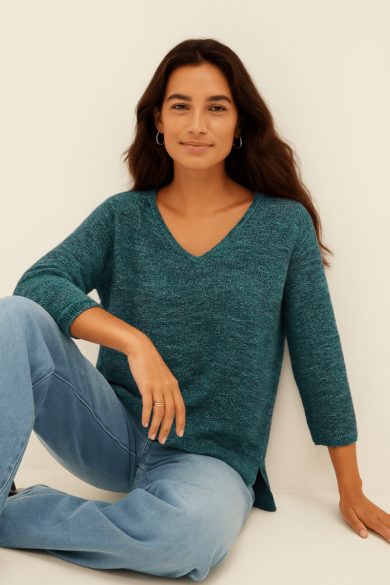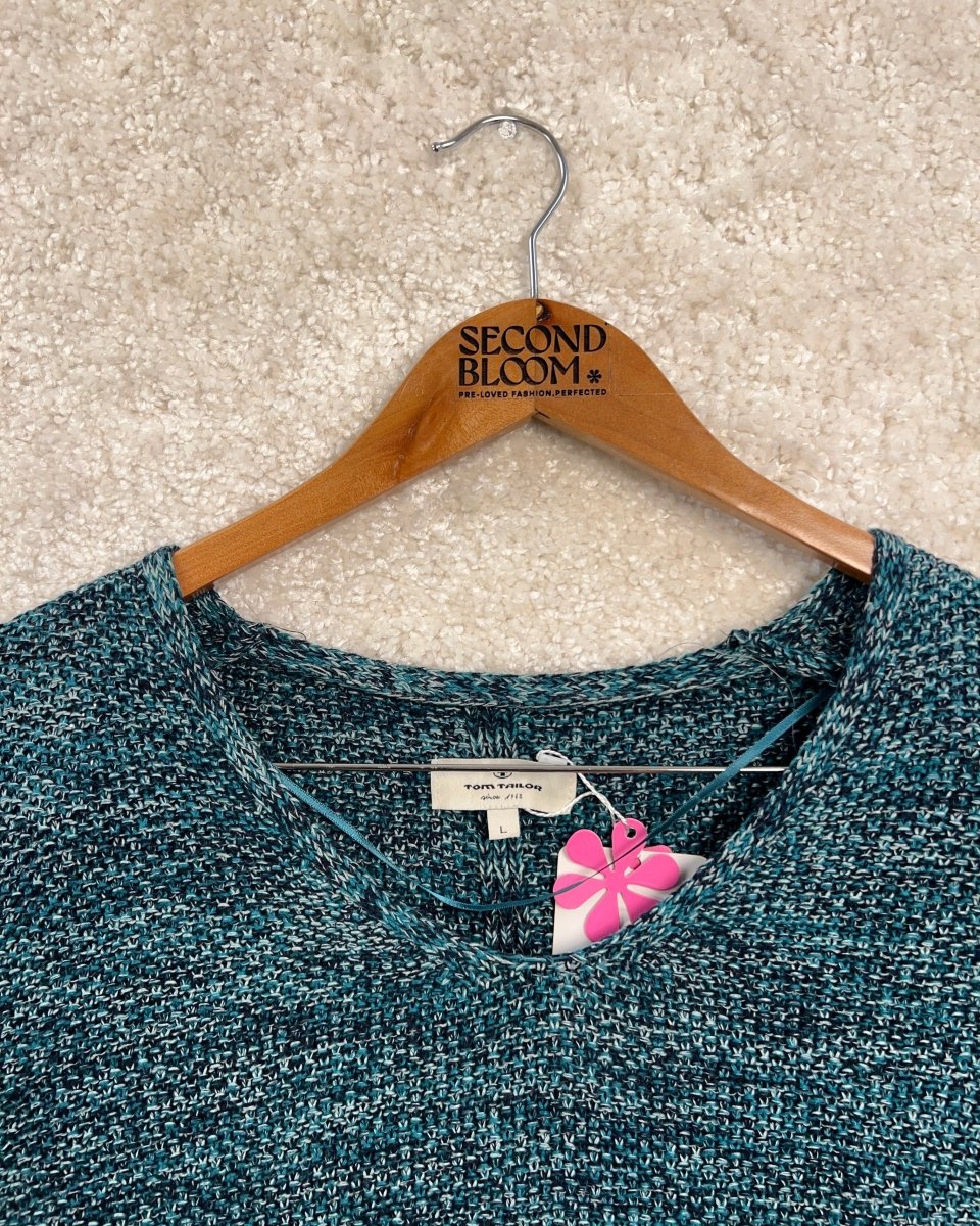 100% Cotton Knit Sweater in Teal Blue-Size: L