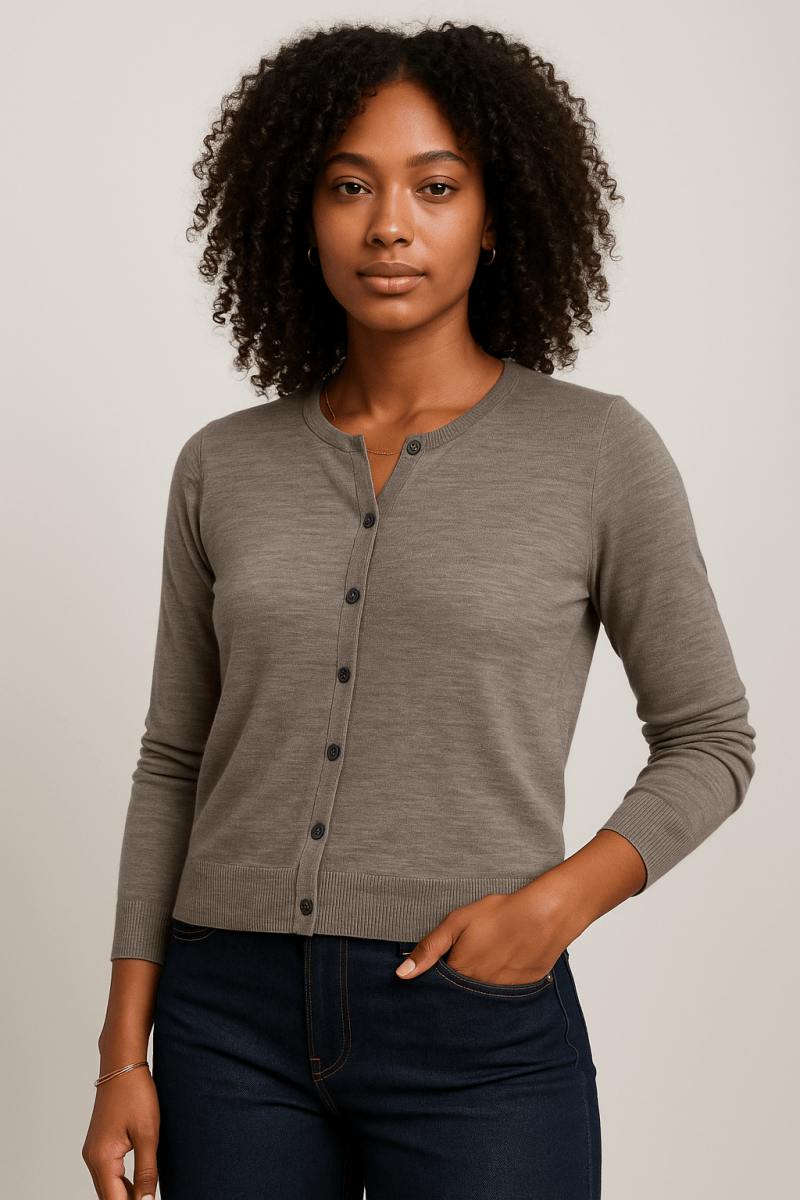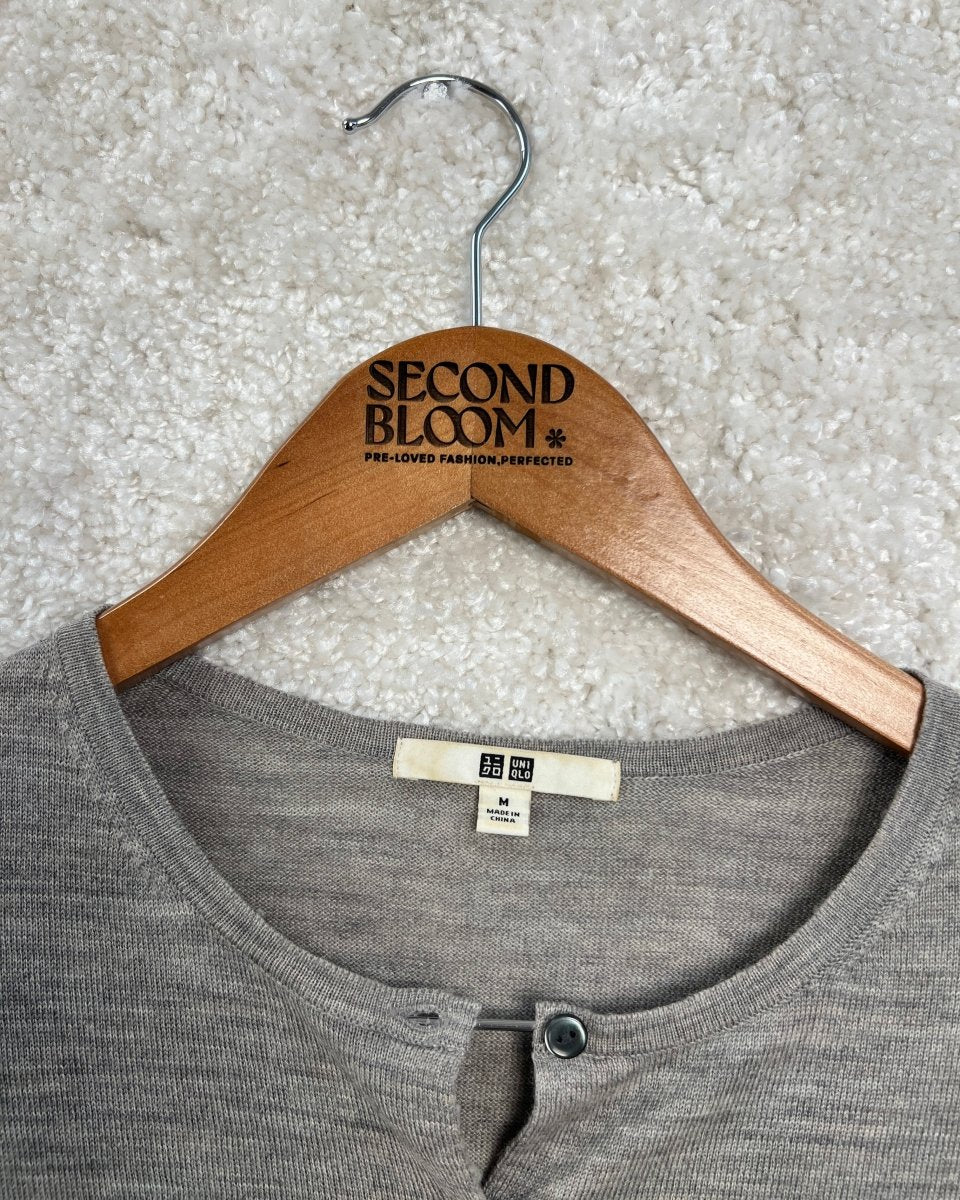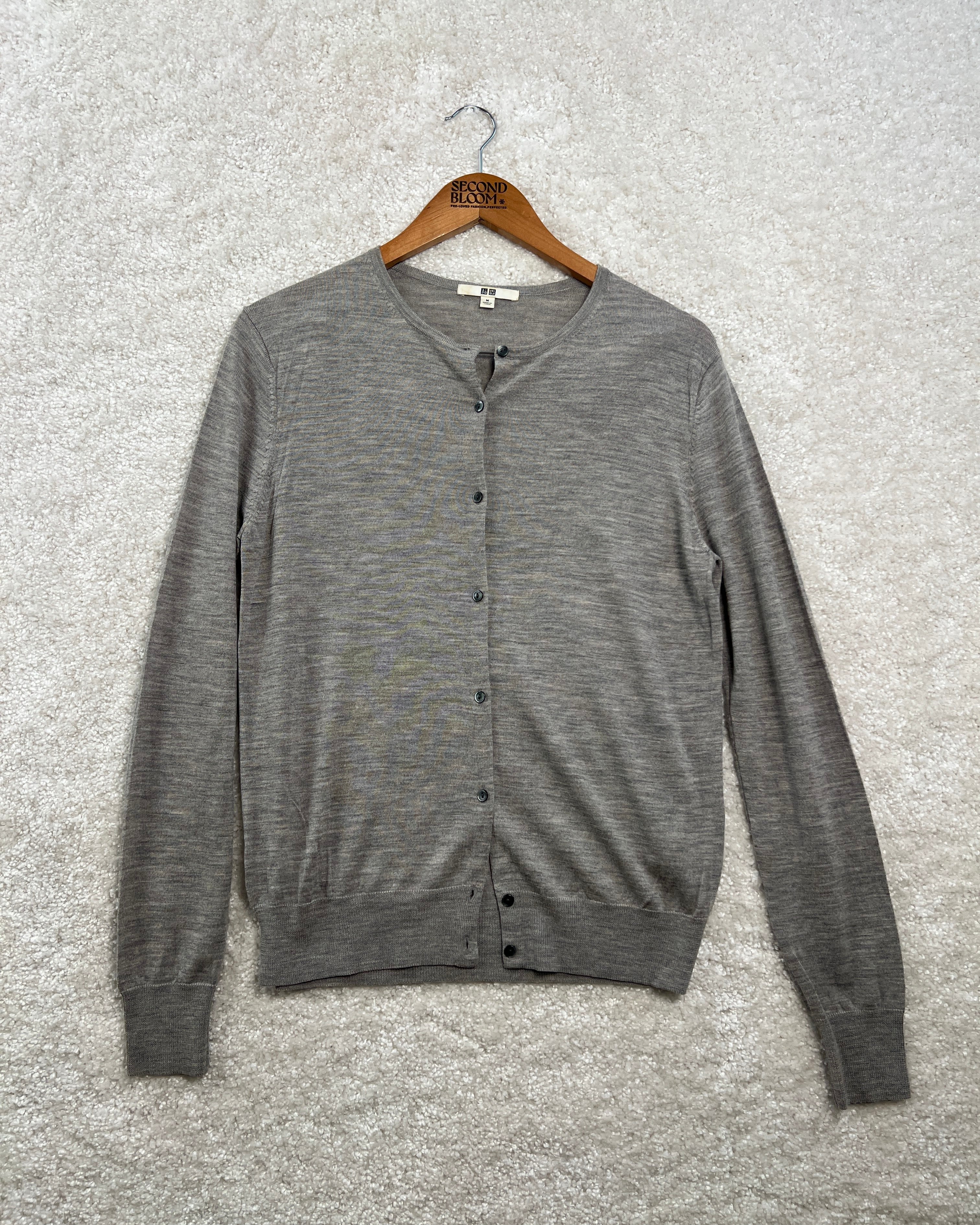 Basic Pure Wool Cardigan in Silver Grey-Size: M