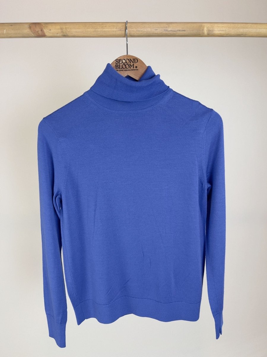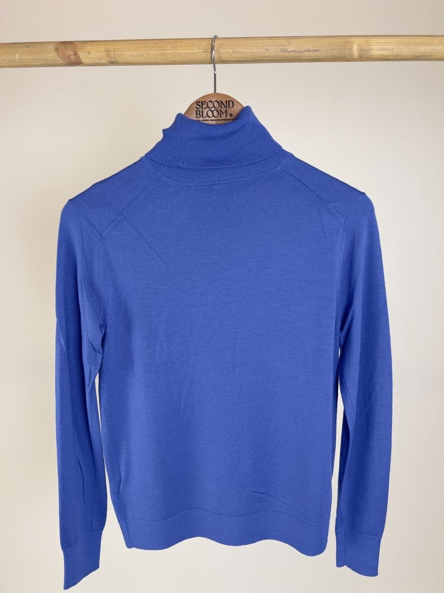 100% Wool Turtleneck Sweater in Cobalt Blue - Size: S