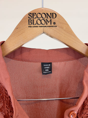 Maroon Lace Trim Blouse-Size: XXL