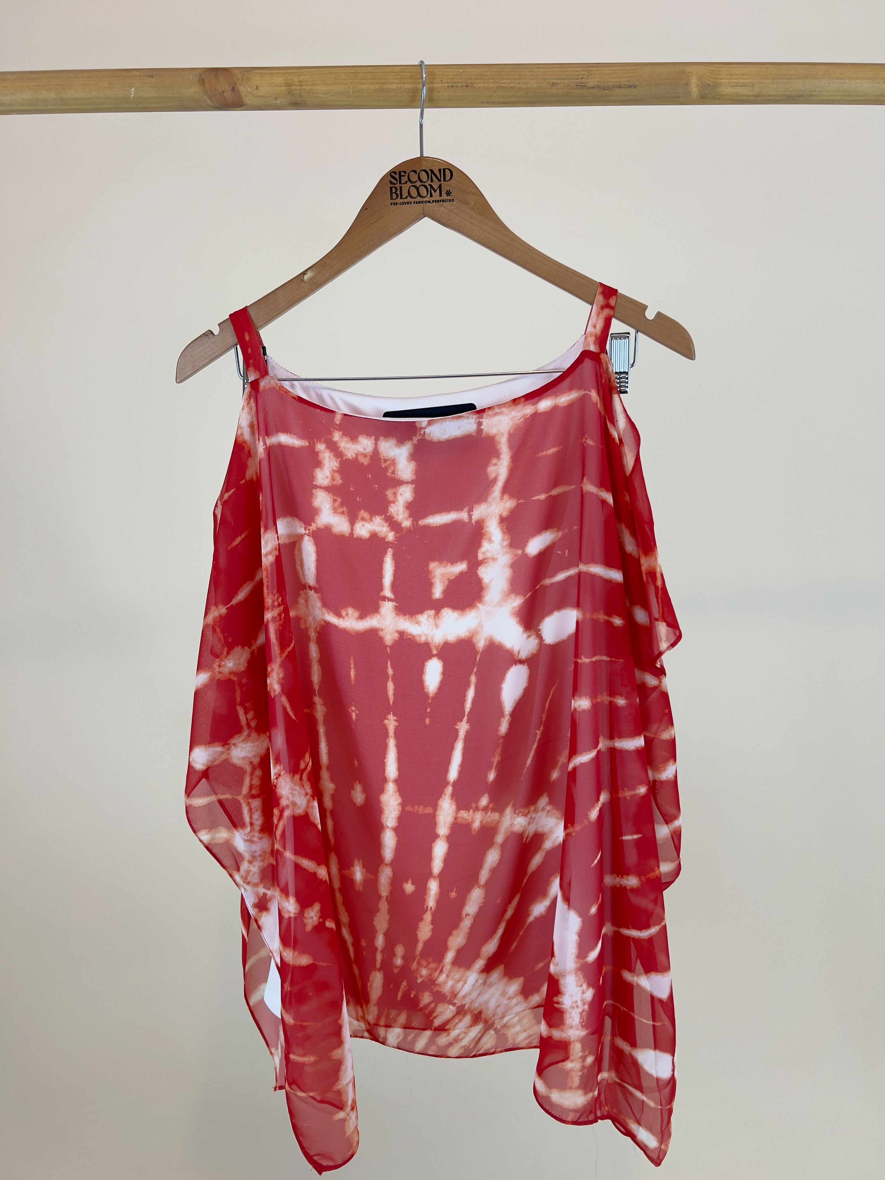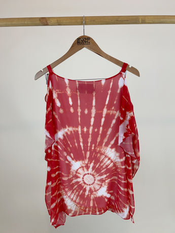 Cold Shoulder Tie Dye Print blouse-Size: L