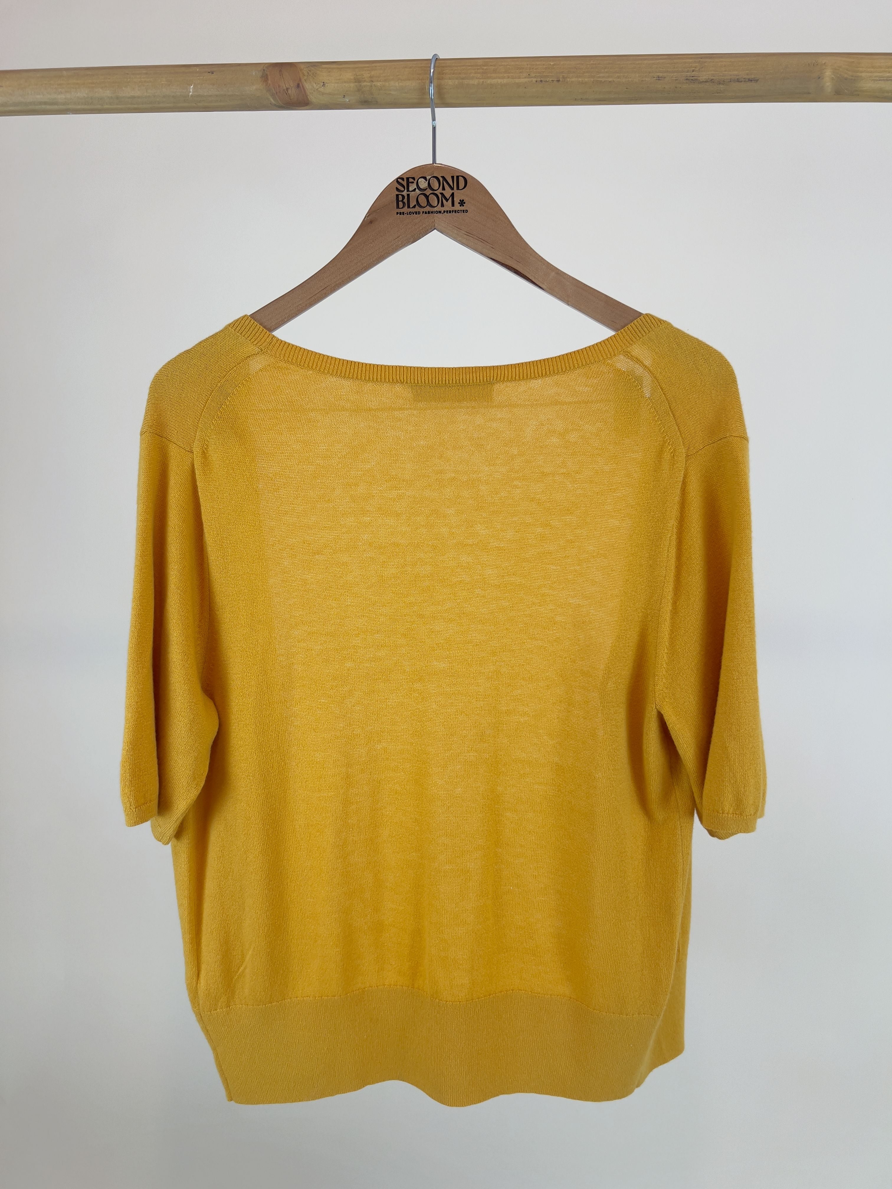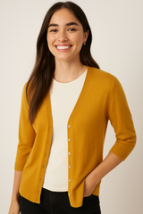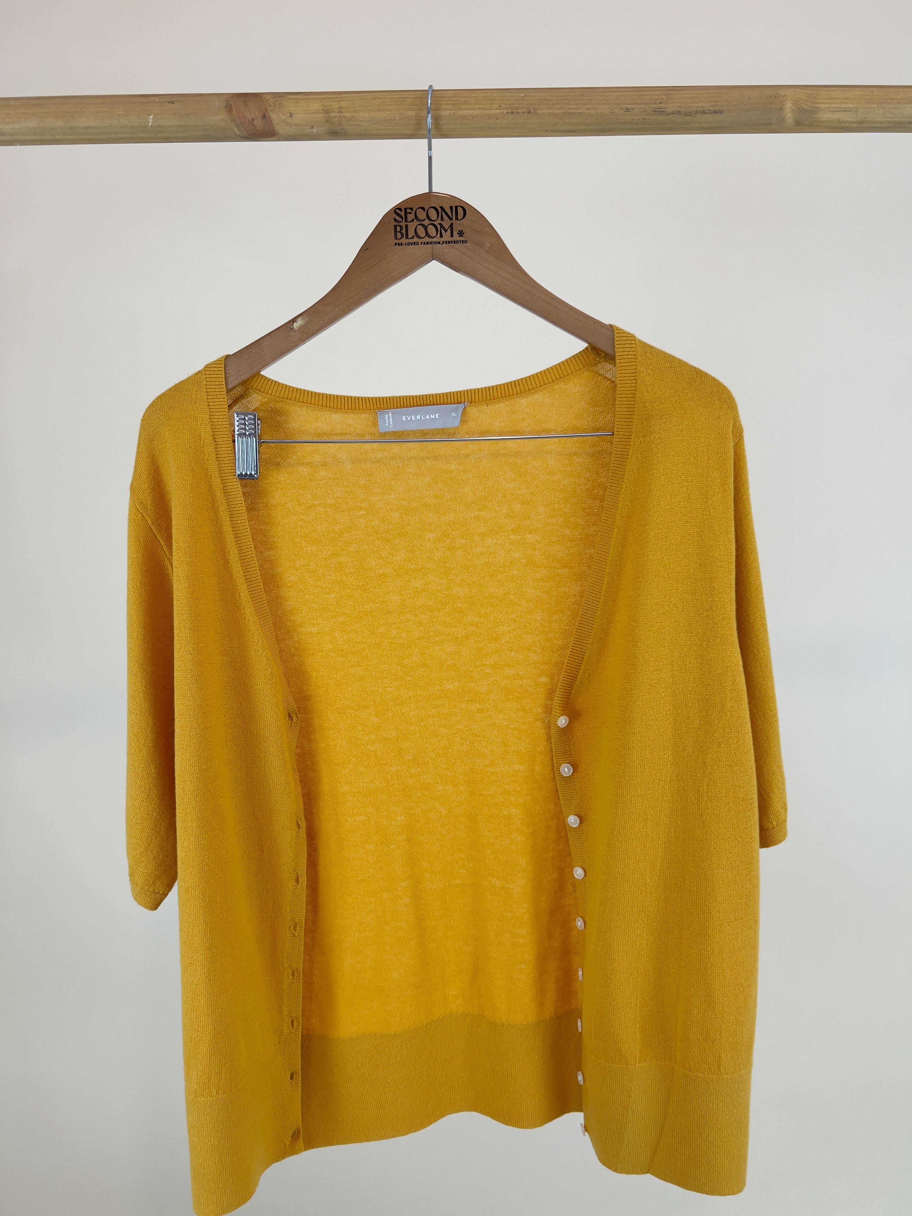 Mustard Yellow Cardigan in Wool and Cotton Blend-Size:XL
