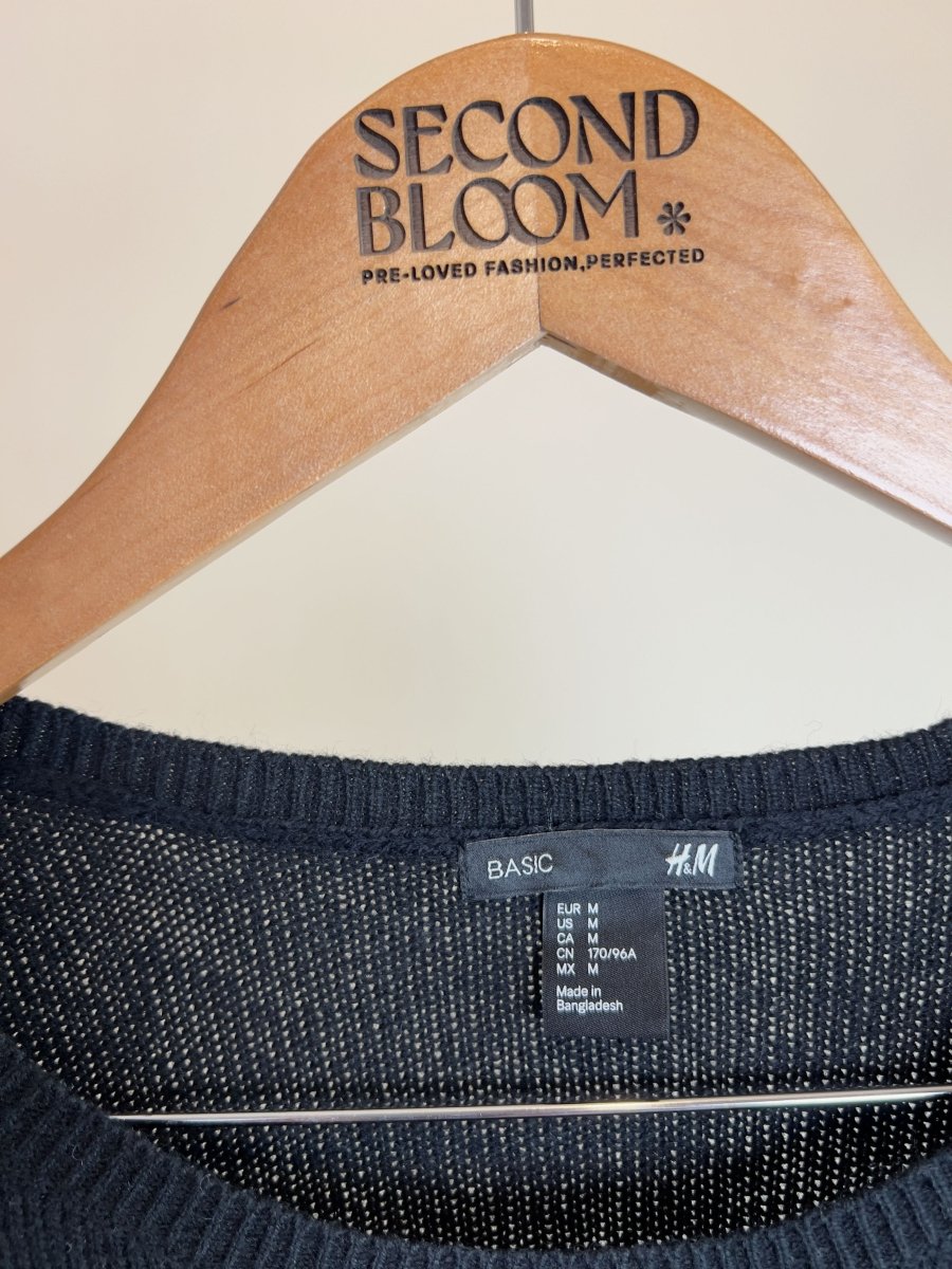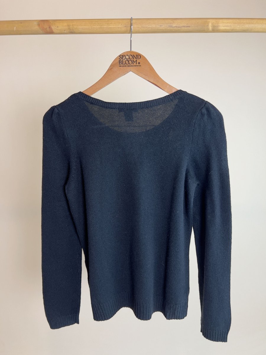 Basic Black Knit Sweater in Wool Blend - Size: M