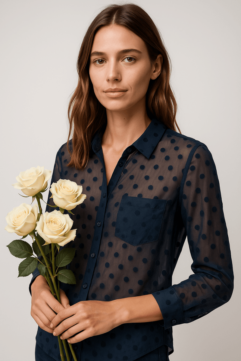 • إرشادات المقاسات : قد لا يعكس نموذج الذكاء الاصطناعي المقاسات تمامًا، لذا يرجى الاعتماد على مخطط المقاسات والقياسات المدرجة لدينا للحصول على الدقة.
