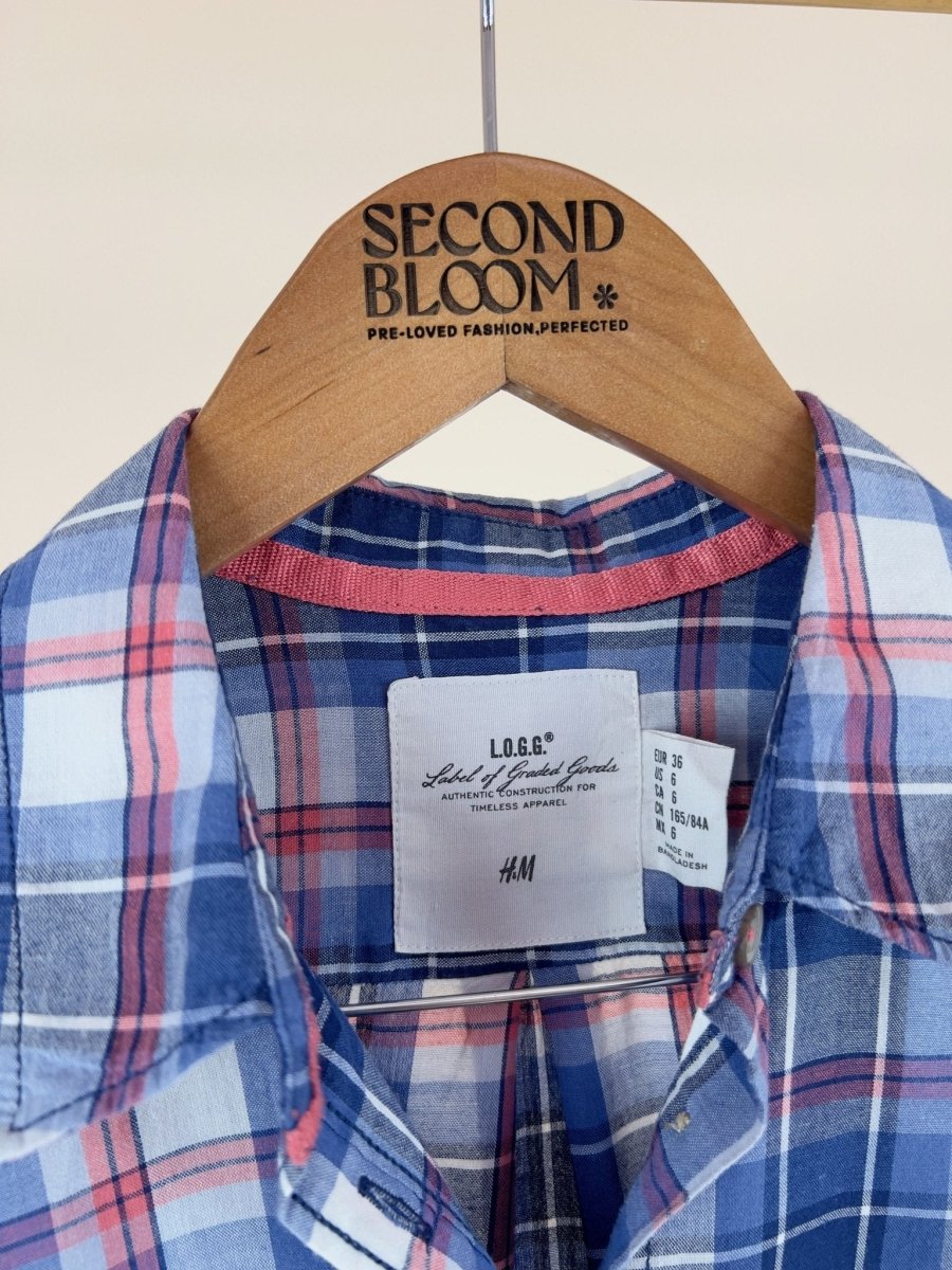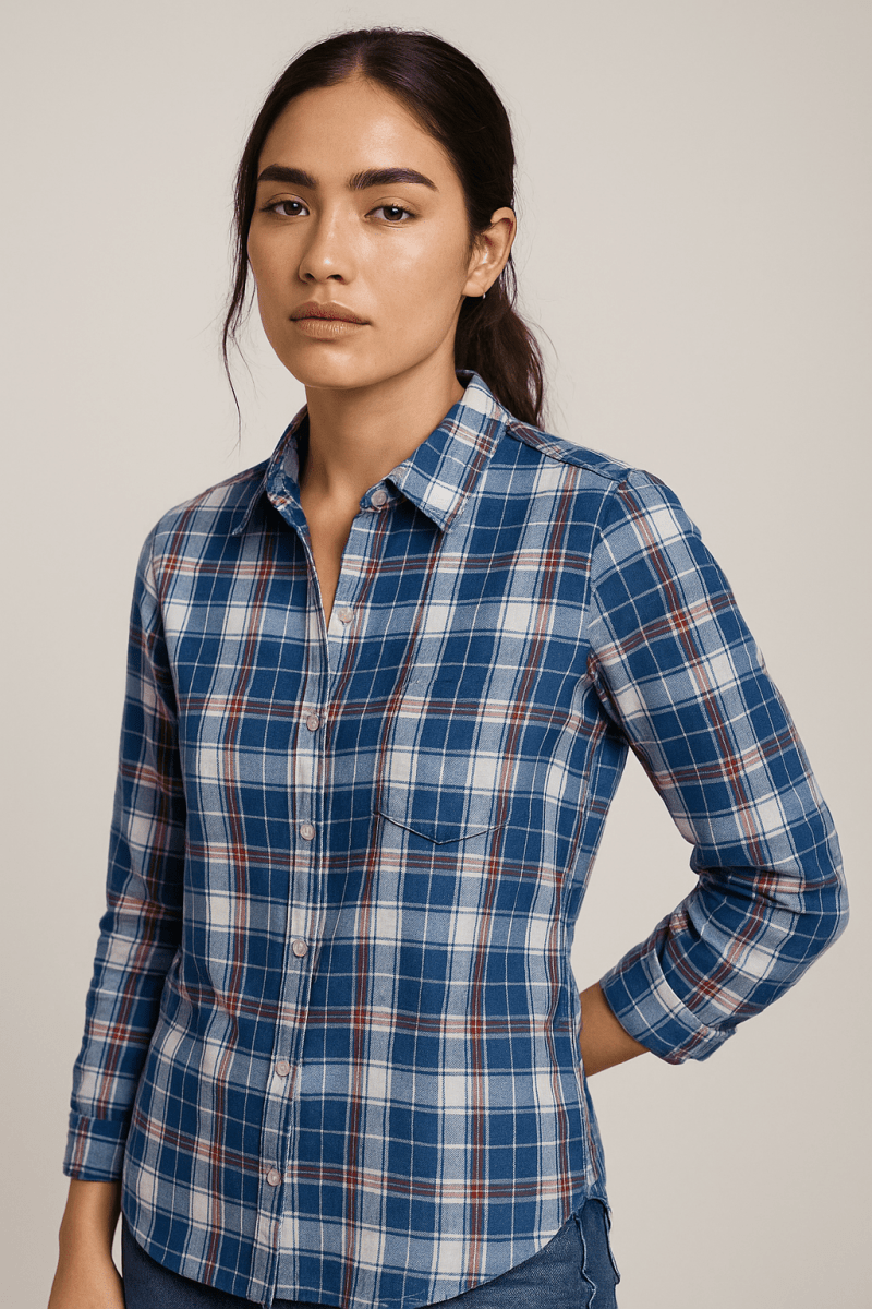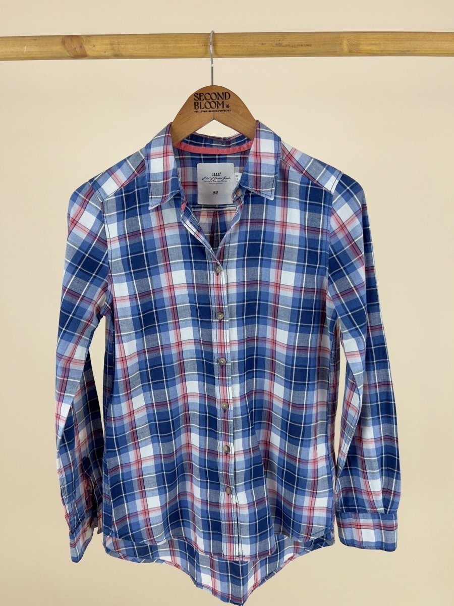 100% Cotton Plaid Shirt in Blue,Red and White- Size: S