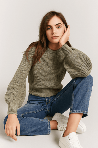 Cotton Blend Sweater with Shimmer-Size: XS