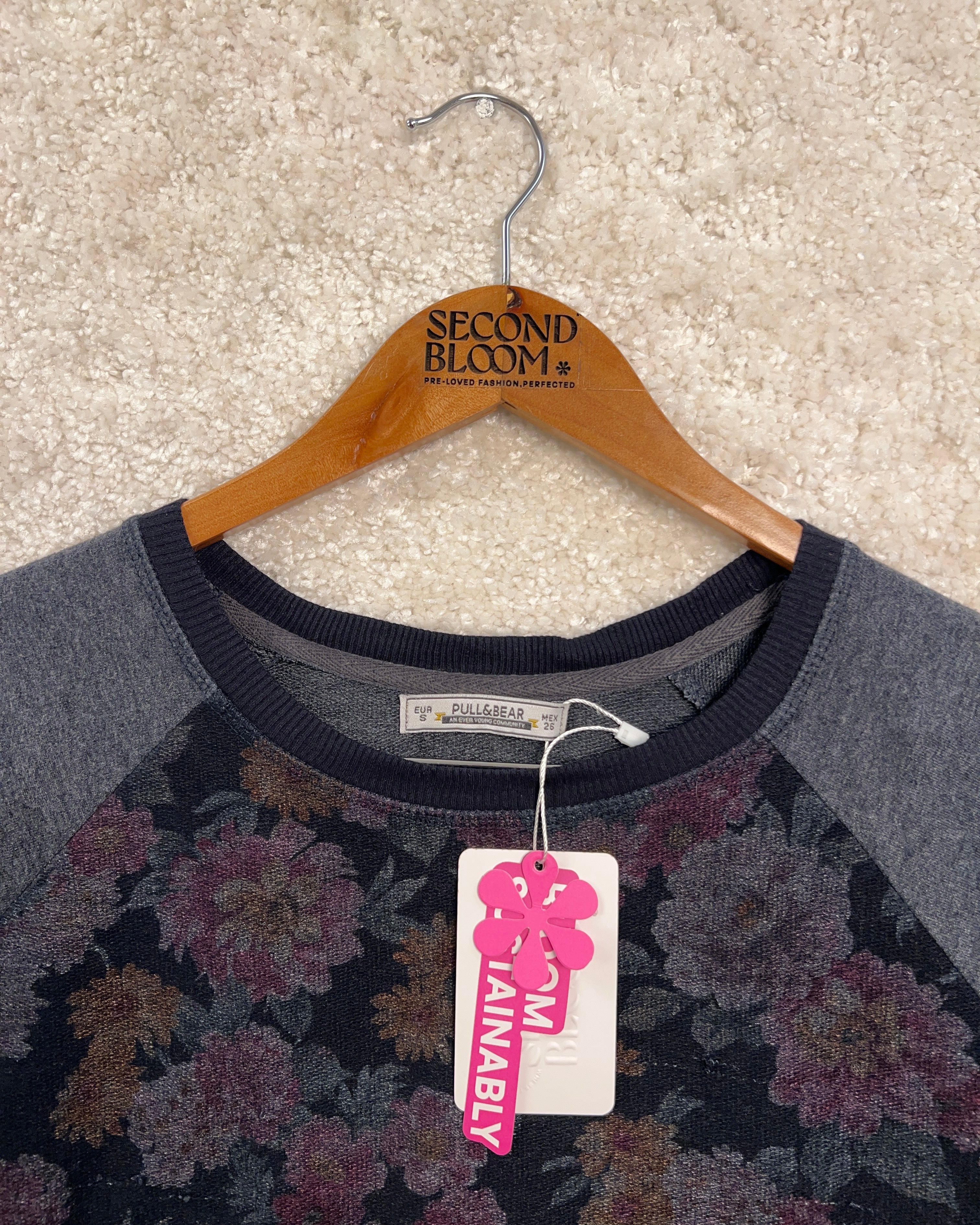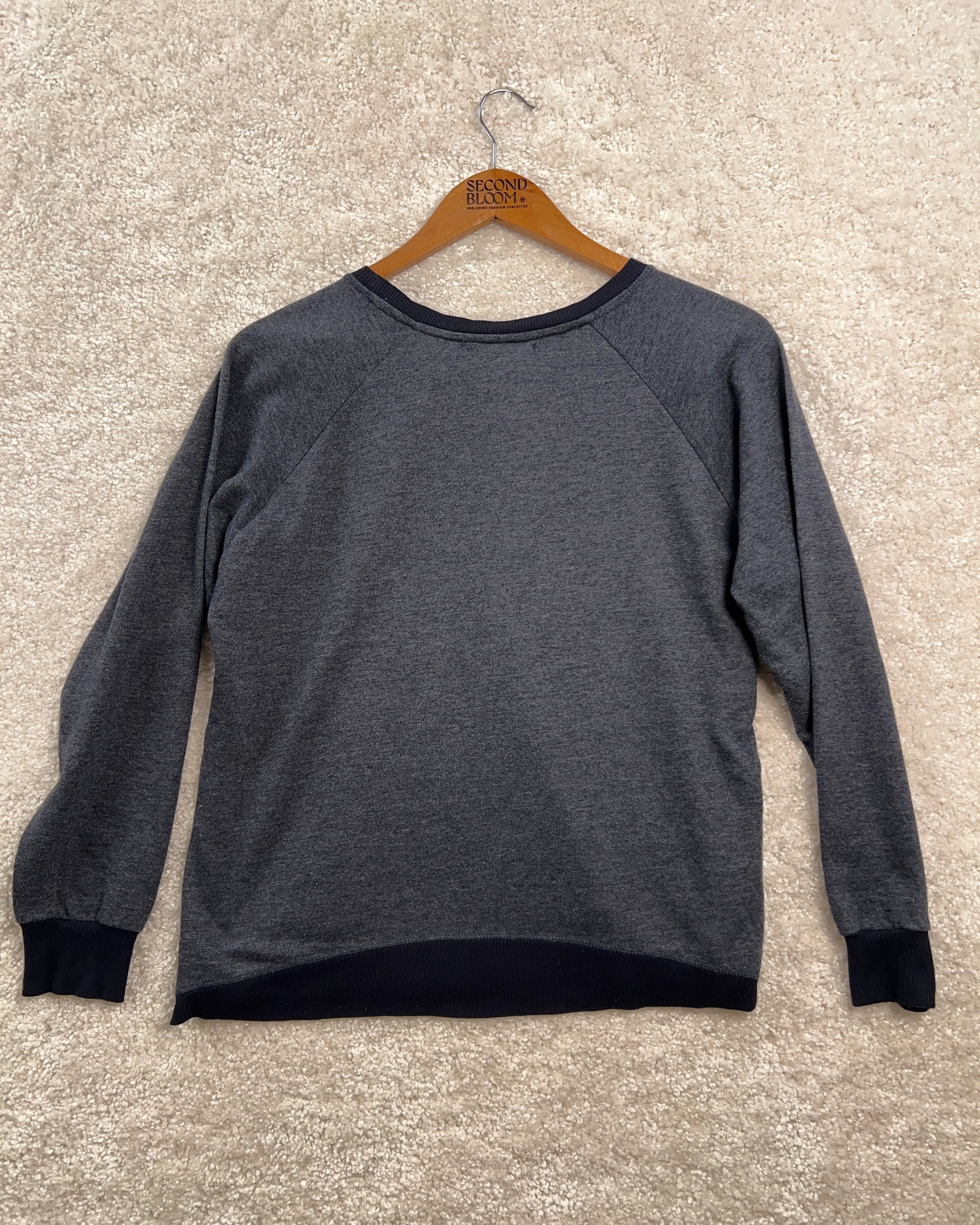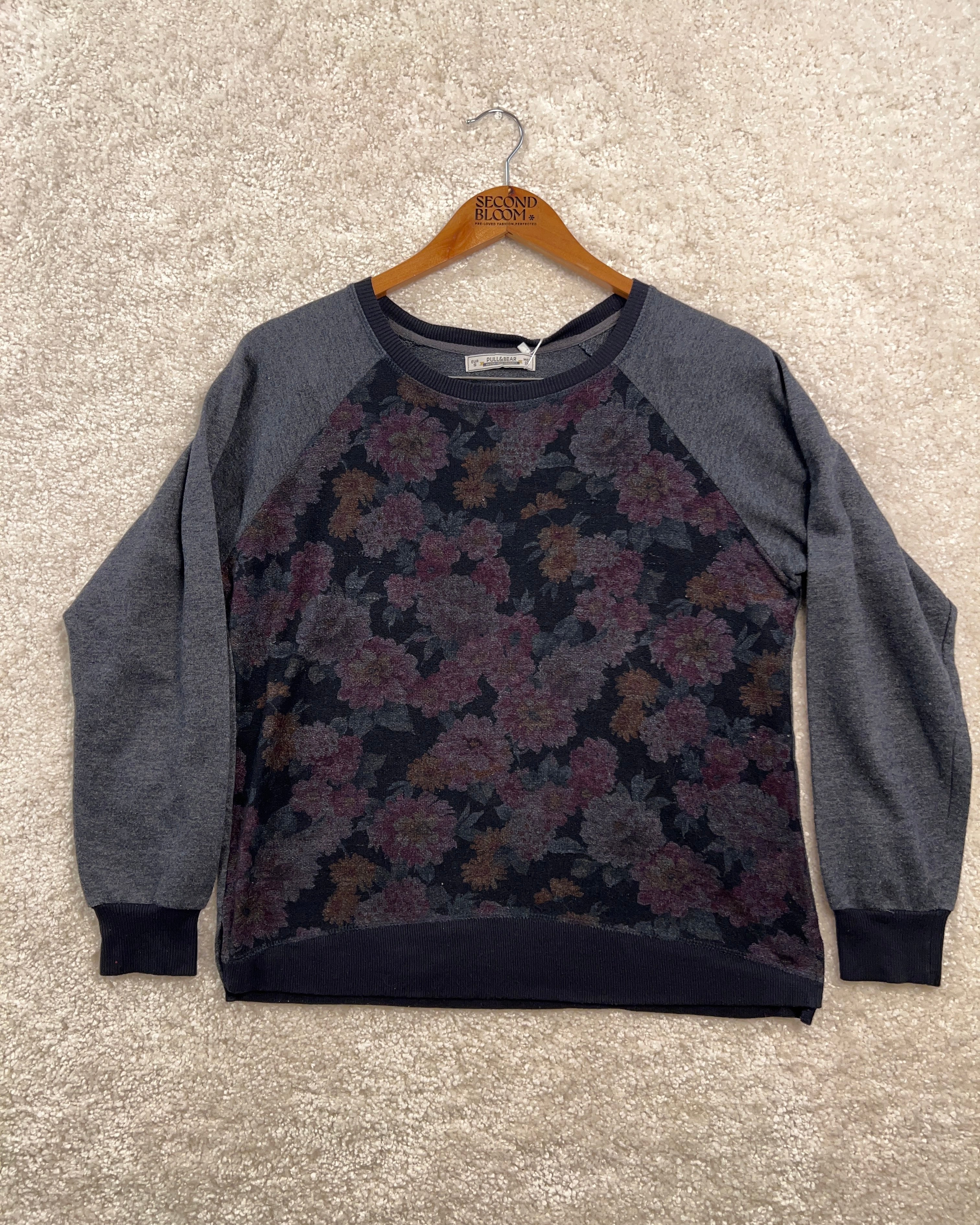 Charcoal Grey Sweater with Floral Pattern-Size: S