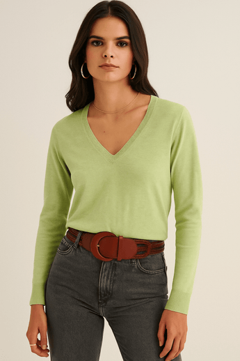 Cotton Cashmere Blend V-neck Sweater-Size: M