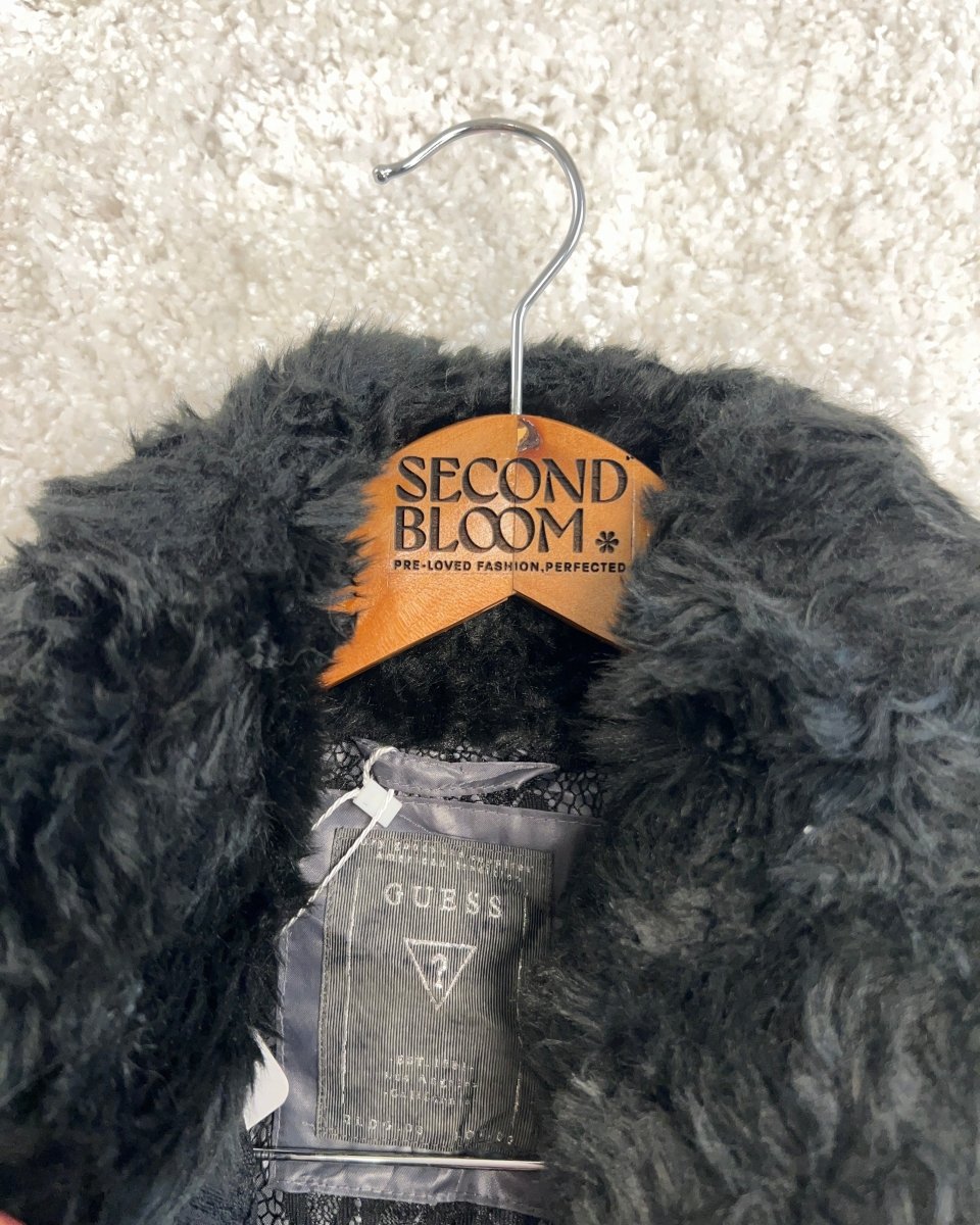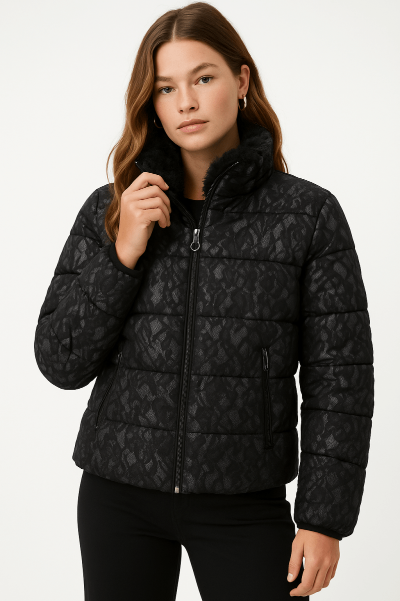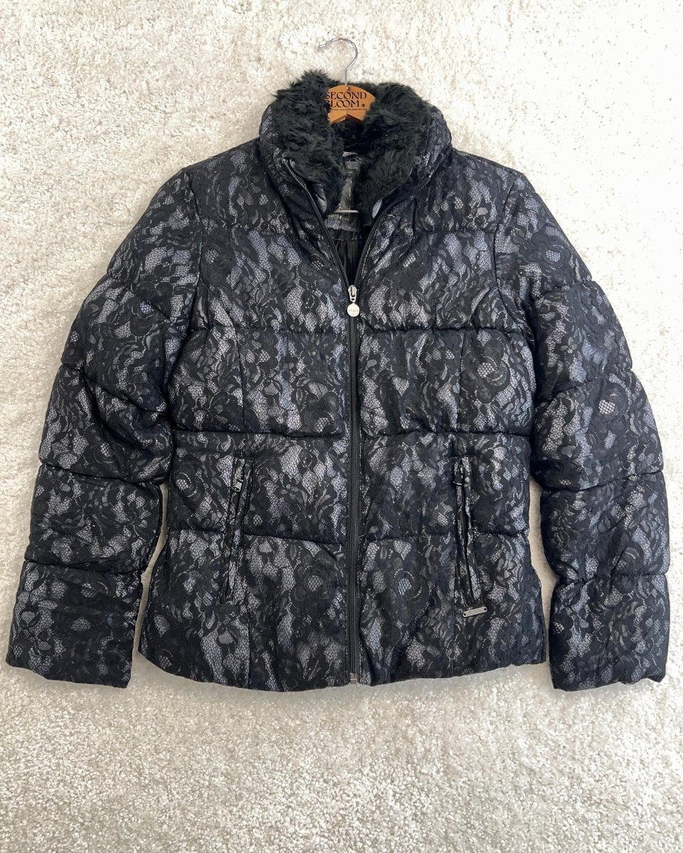 GUESS Black Puffer Jacket with Lace Overlay-Size: S