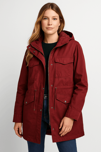 Hooded Parka Jacket with Multiple Pockets - Size: M