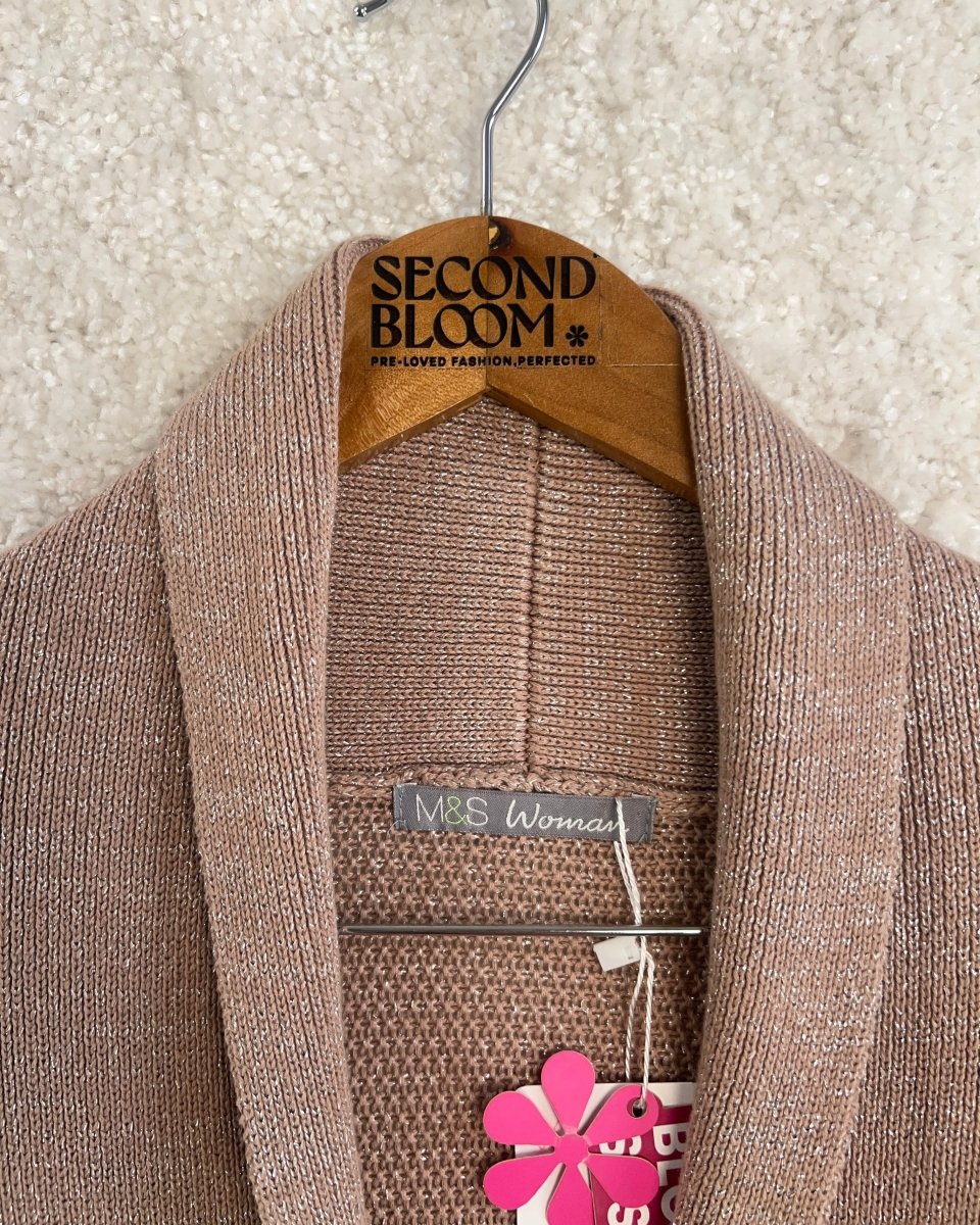 Light Brown Shimmery Knit Cardigan - Size:S/M
