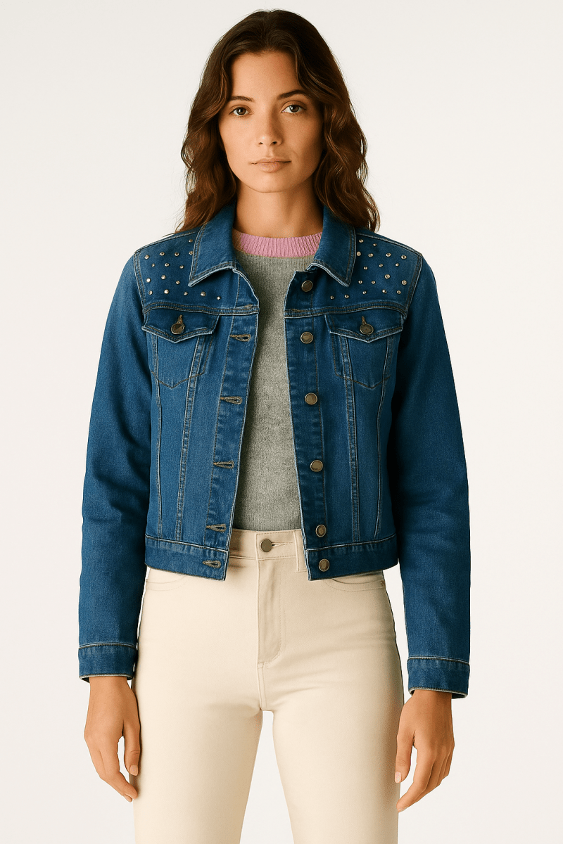 Gold Studded Denim Jacket – Size: M