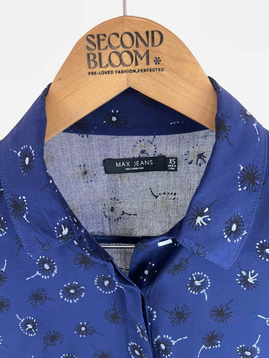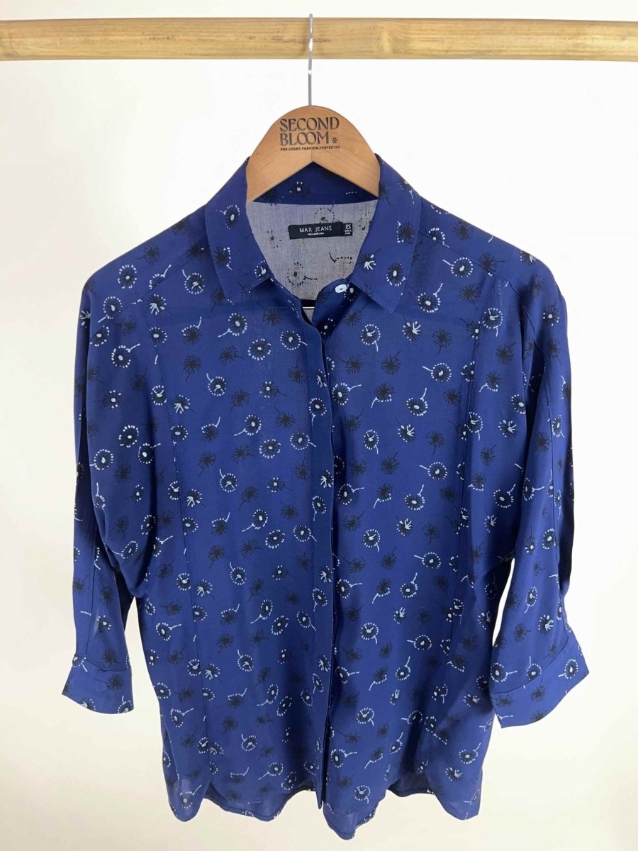 Patterned Shirt with Vivid Blue Shade-Size: XS
