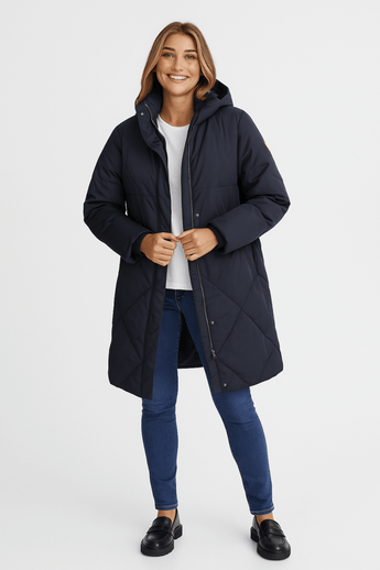 Long Navy Quilted Puffer Jacket from Roxy- Size: S