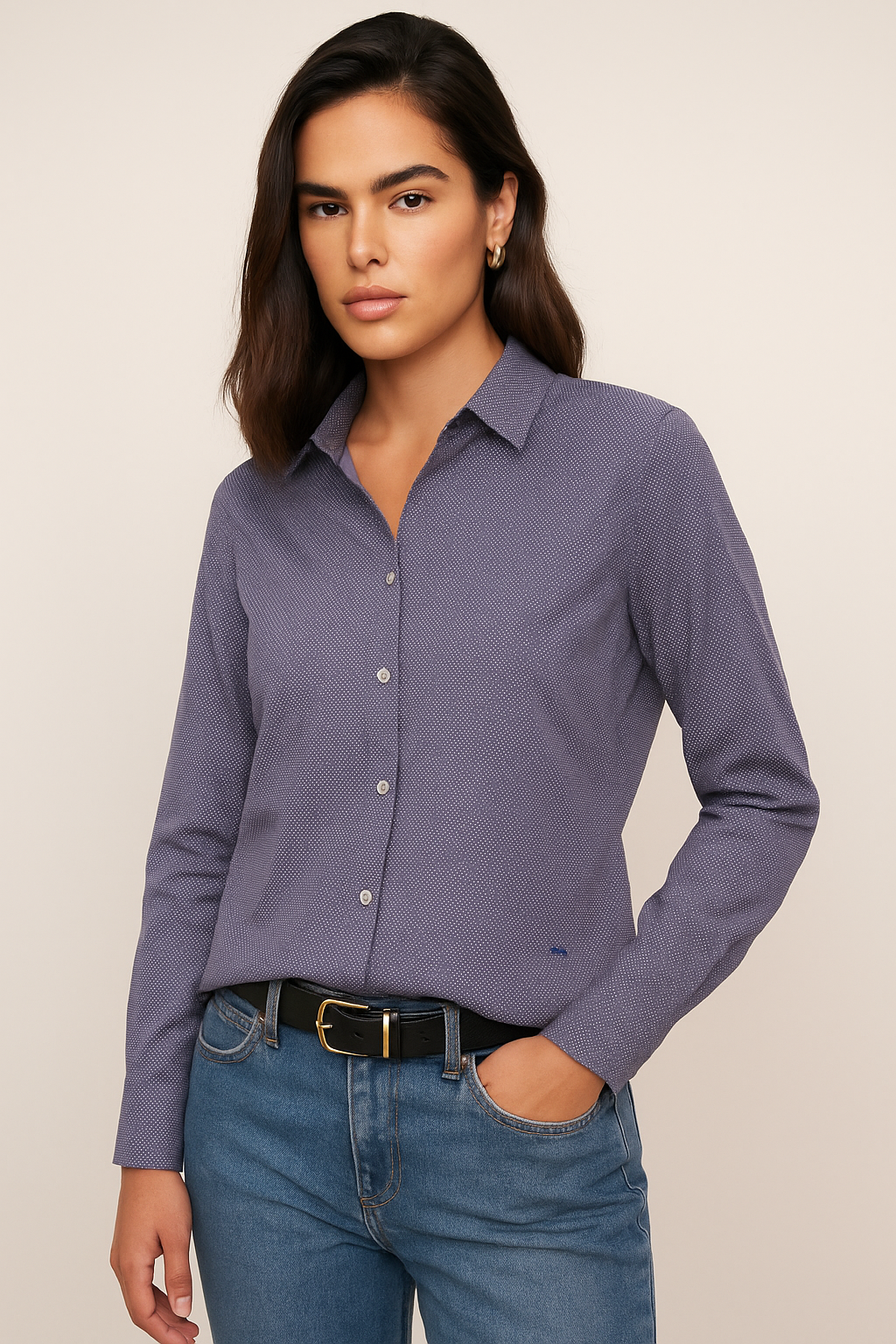 Cotton Purple Shirt with Micro Textured Print - Size: M