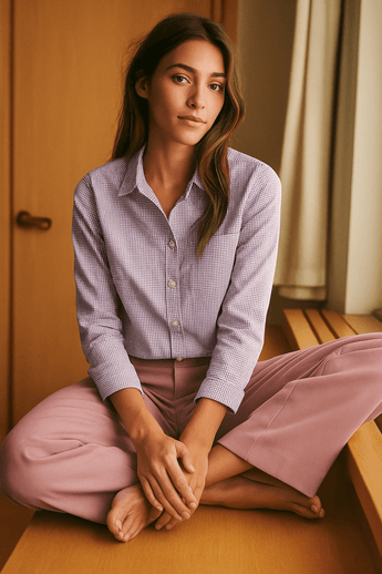 100% Cotton Classic Shirt in Light Purple - Size: M