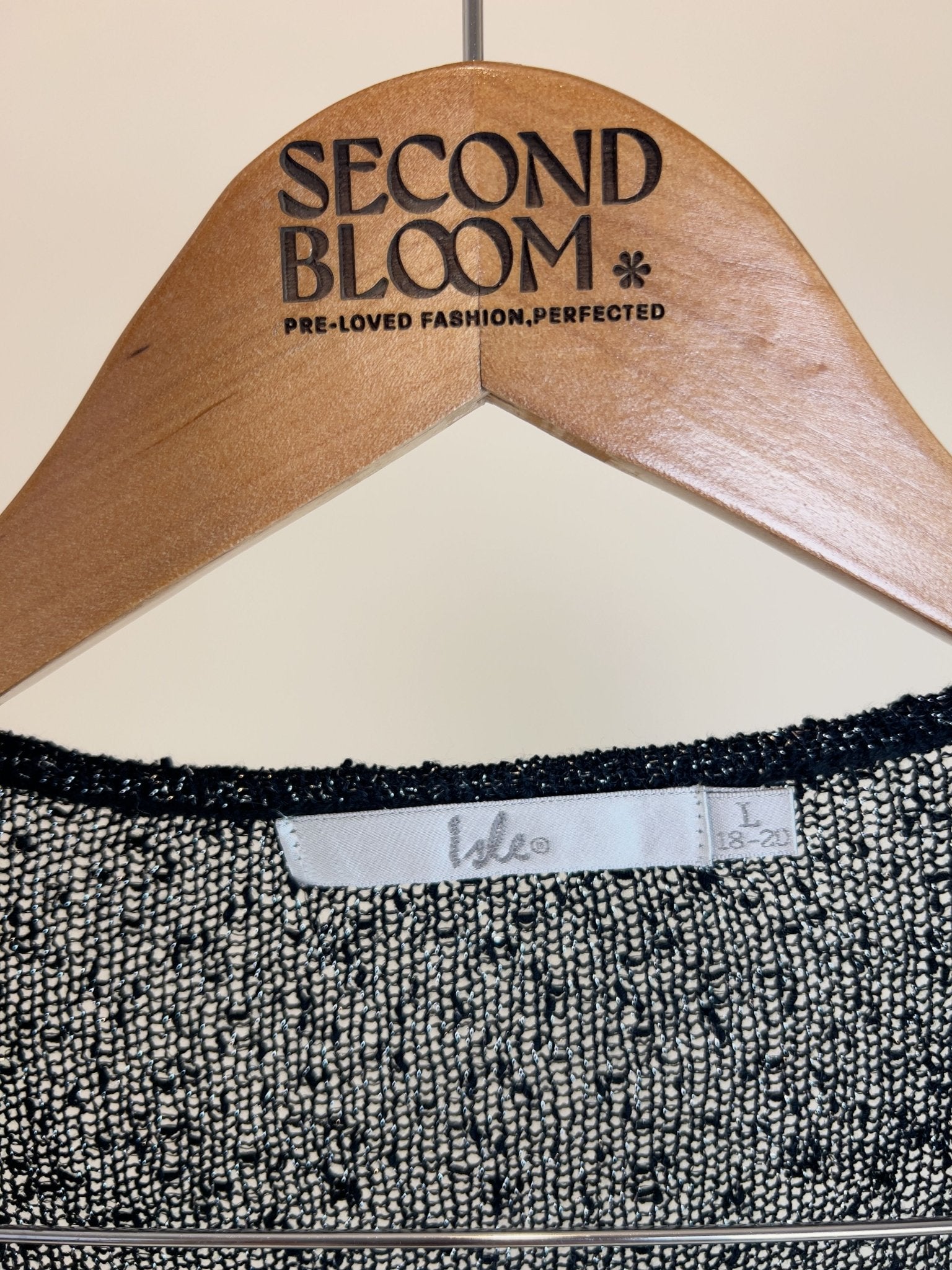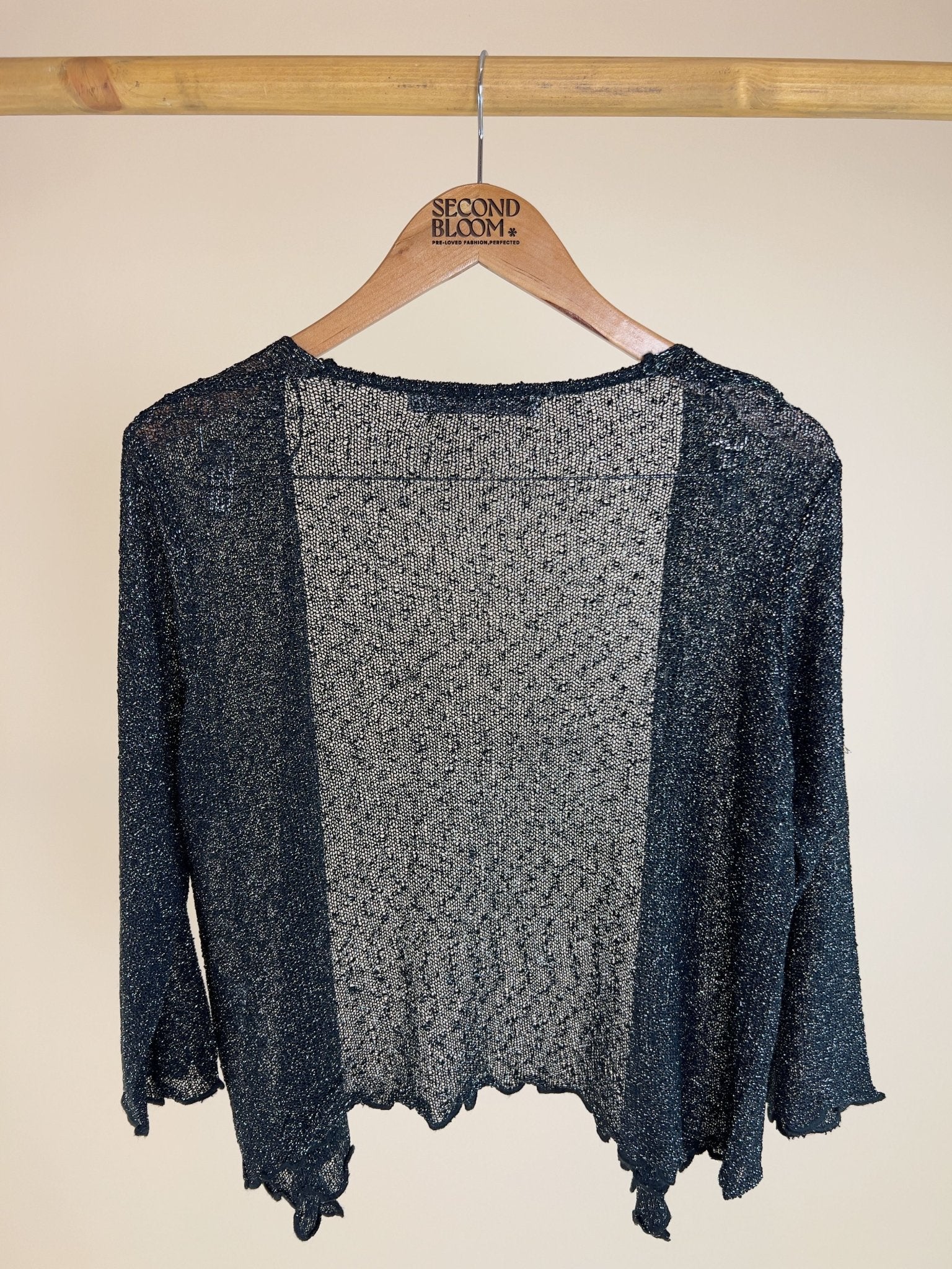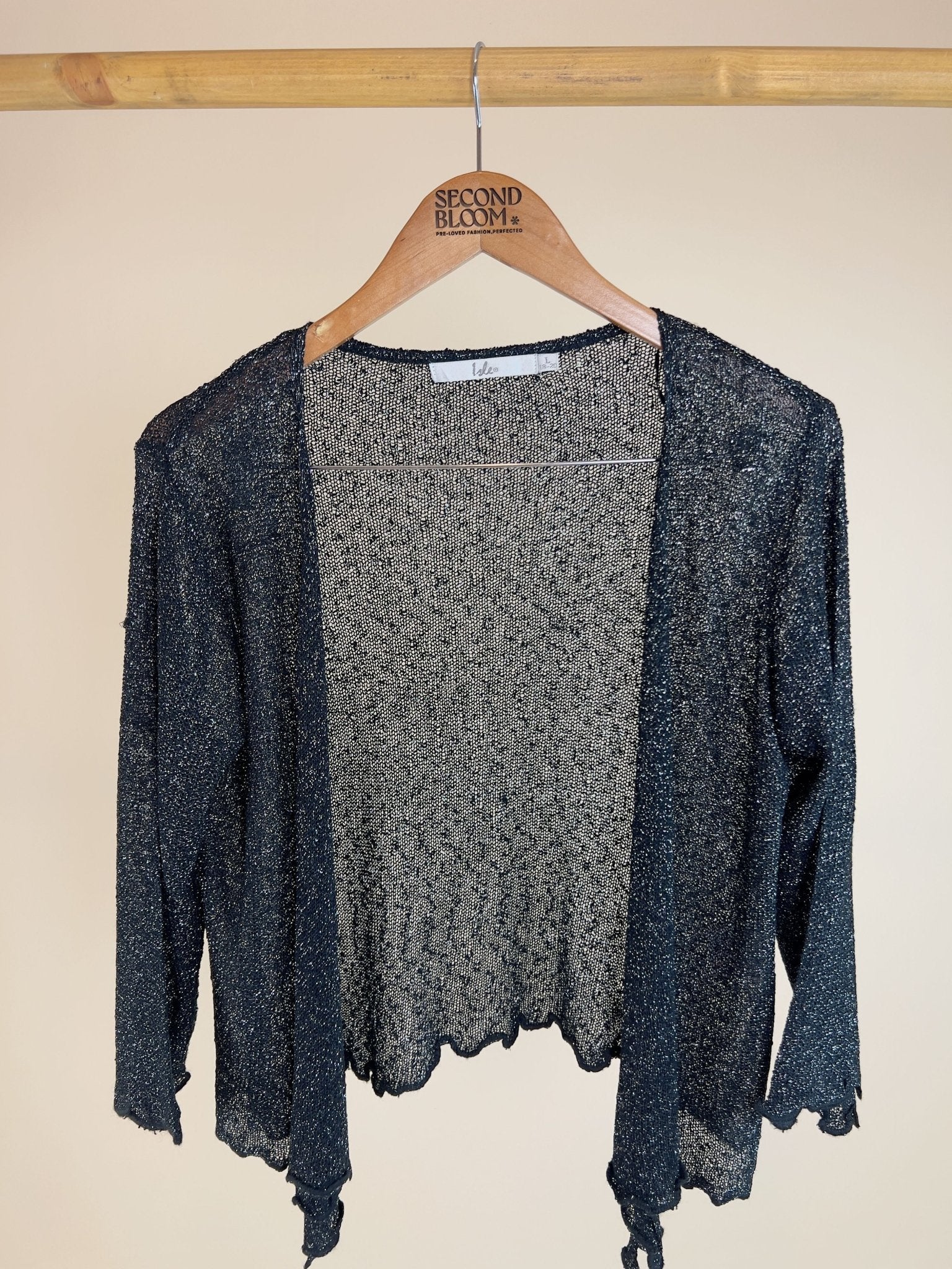 Sheer Black Metallic Cardigan with Shimmer Effect - Size: L