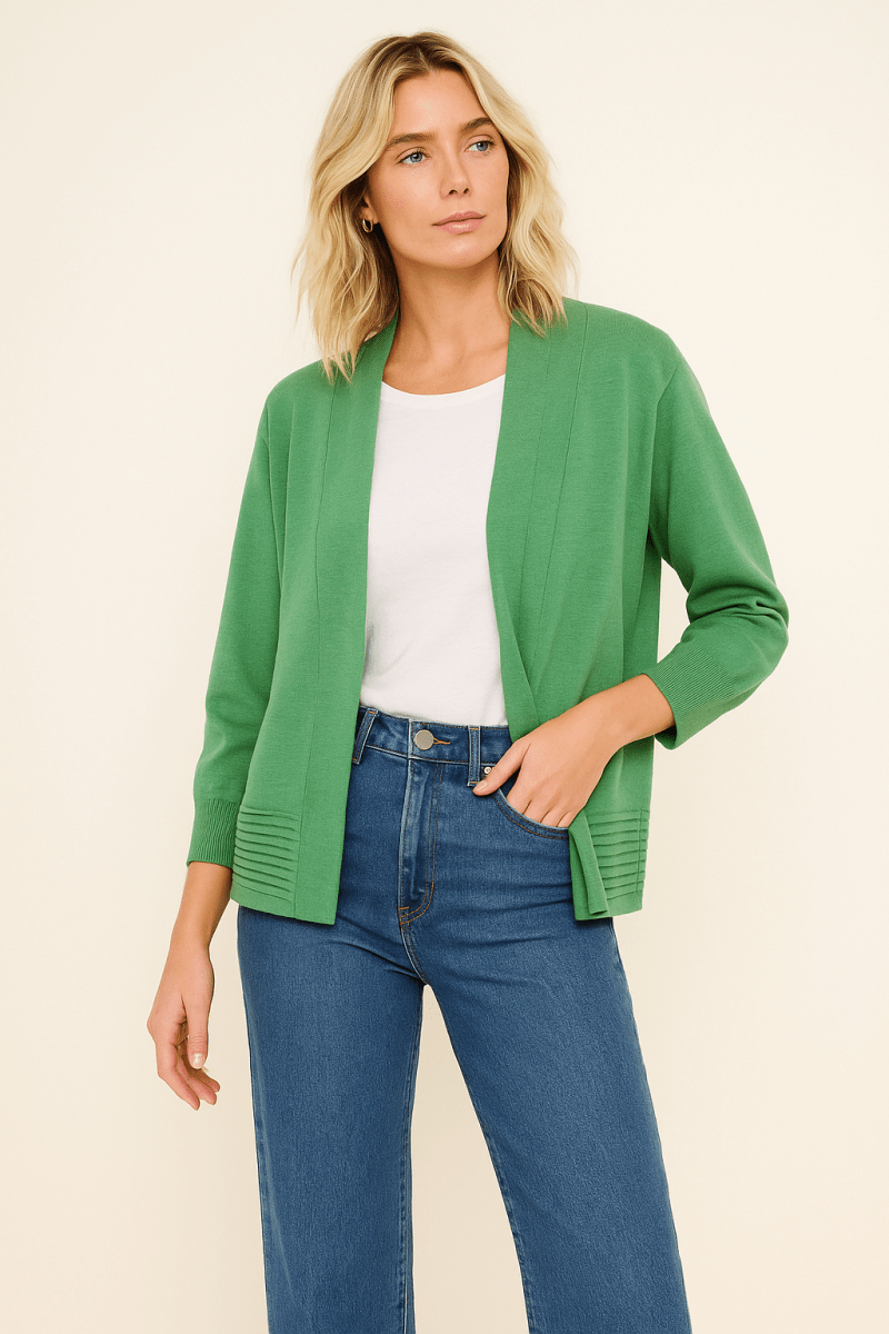 Open-Front Knit Cardigen in Cotton Viscose Blend-Size: M