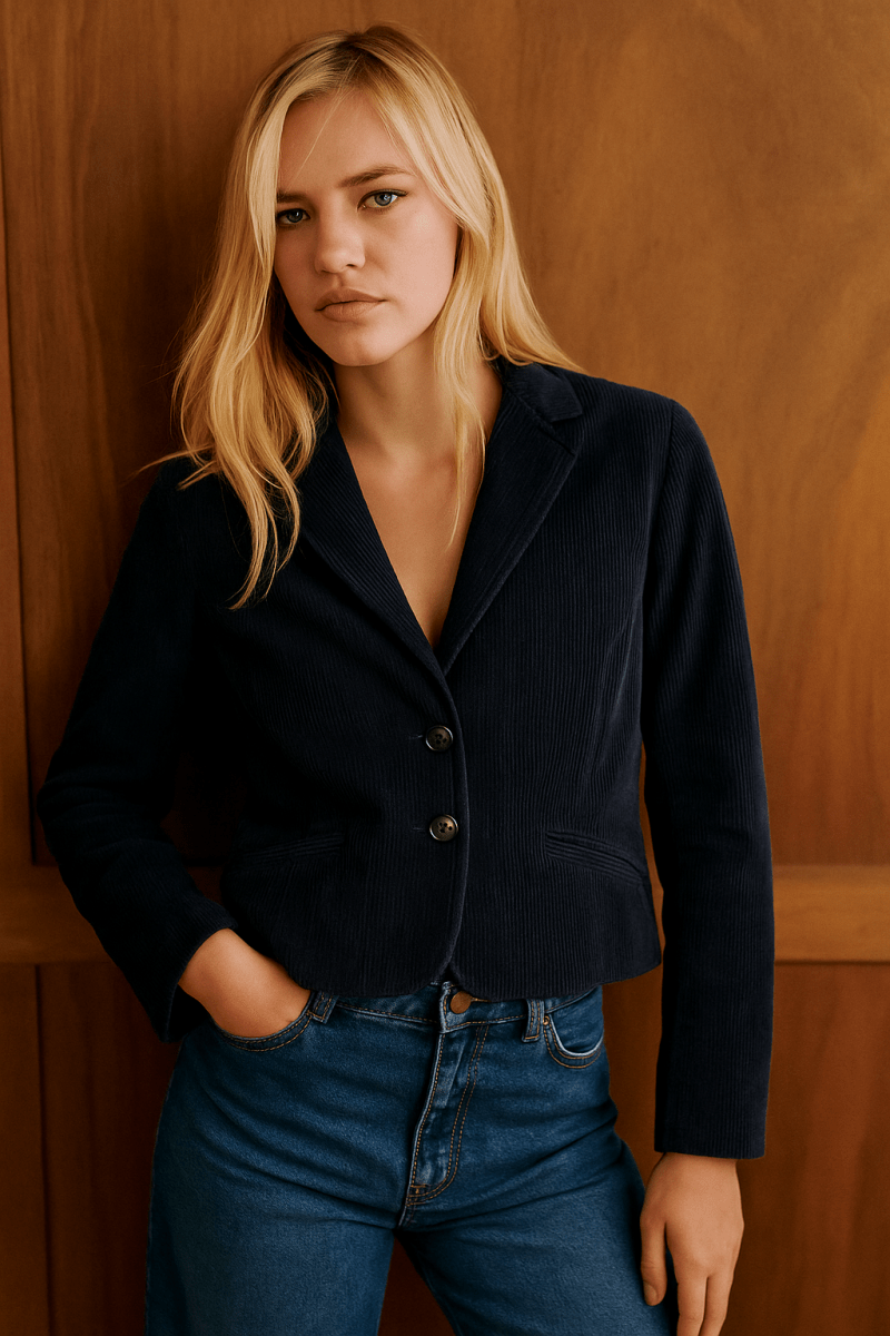100% Cotton Corduroy Jacket in Dark Blue-Size: M
