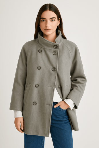 Double-Breasted Coat with Elbow Sleeves-Size: XXL