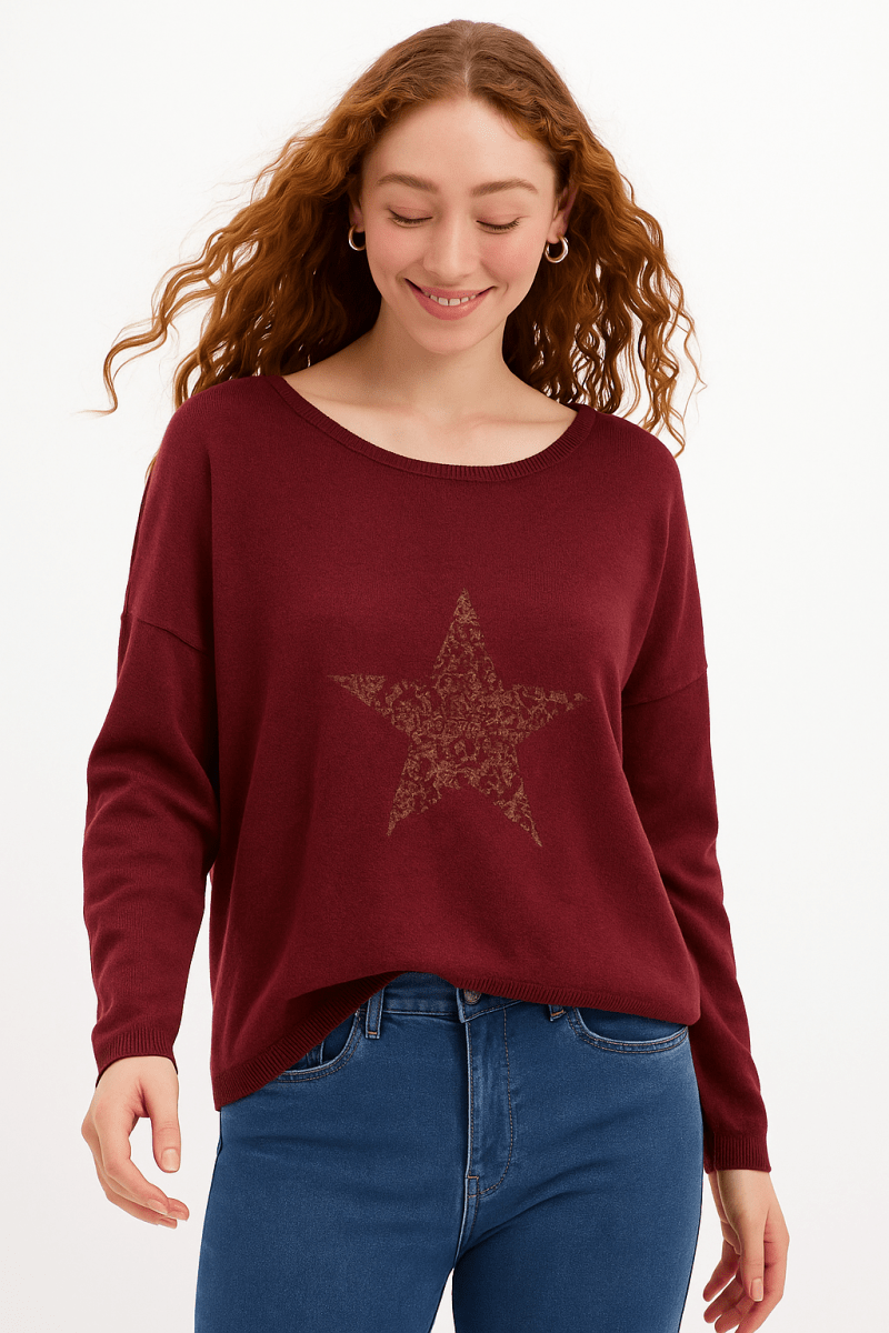 Wool Cashmere Sweater in Deep Burgundy Tone - Size: M/L