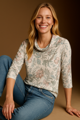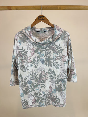 Lightweight Floral Sweater with Cowl Neck-Size: M