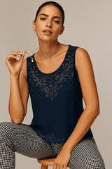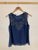 Beaded Top in Deep Navy Color-Size: S