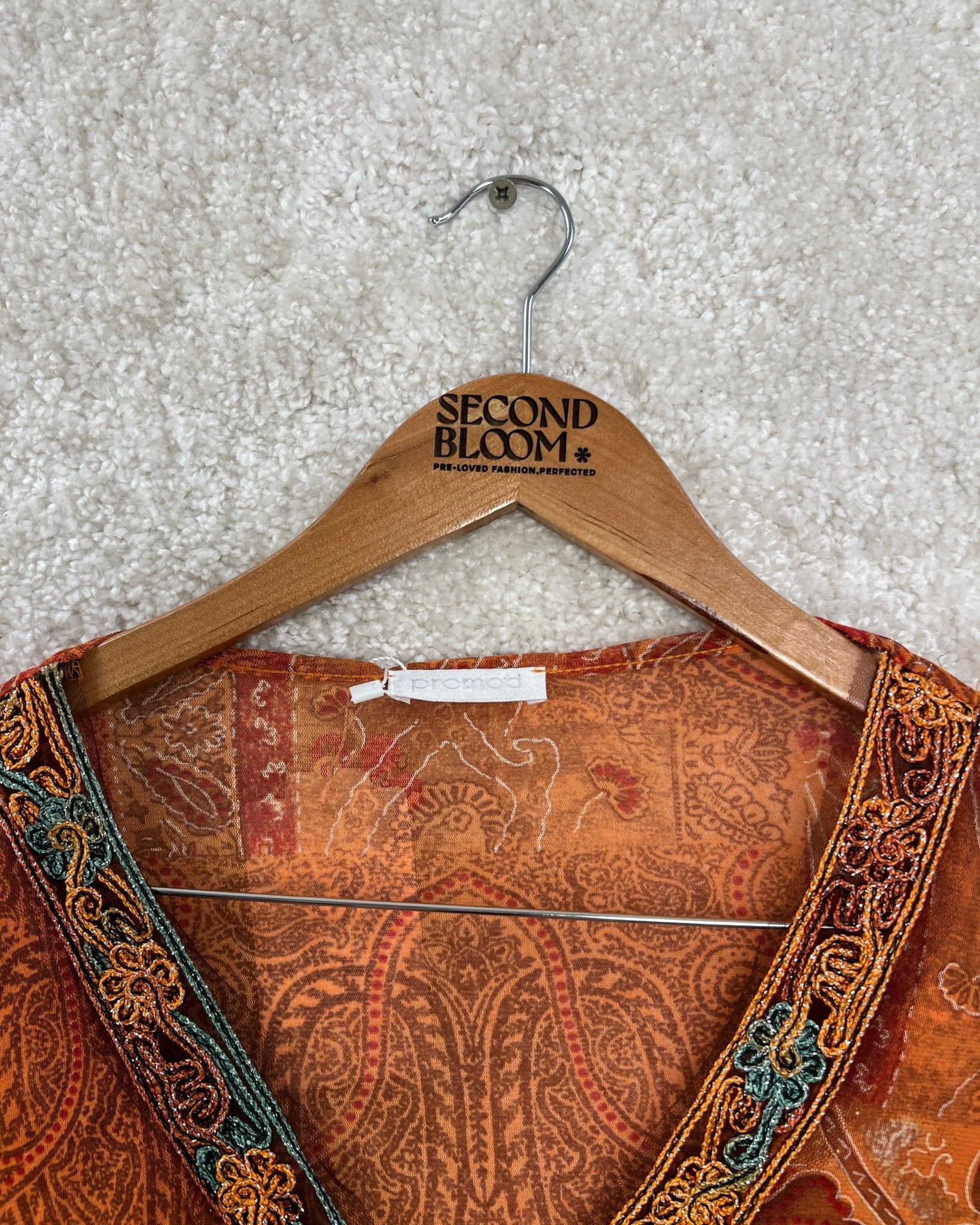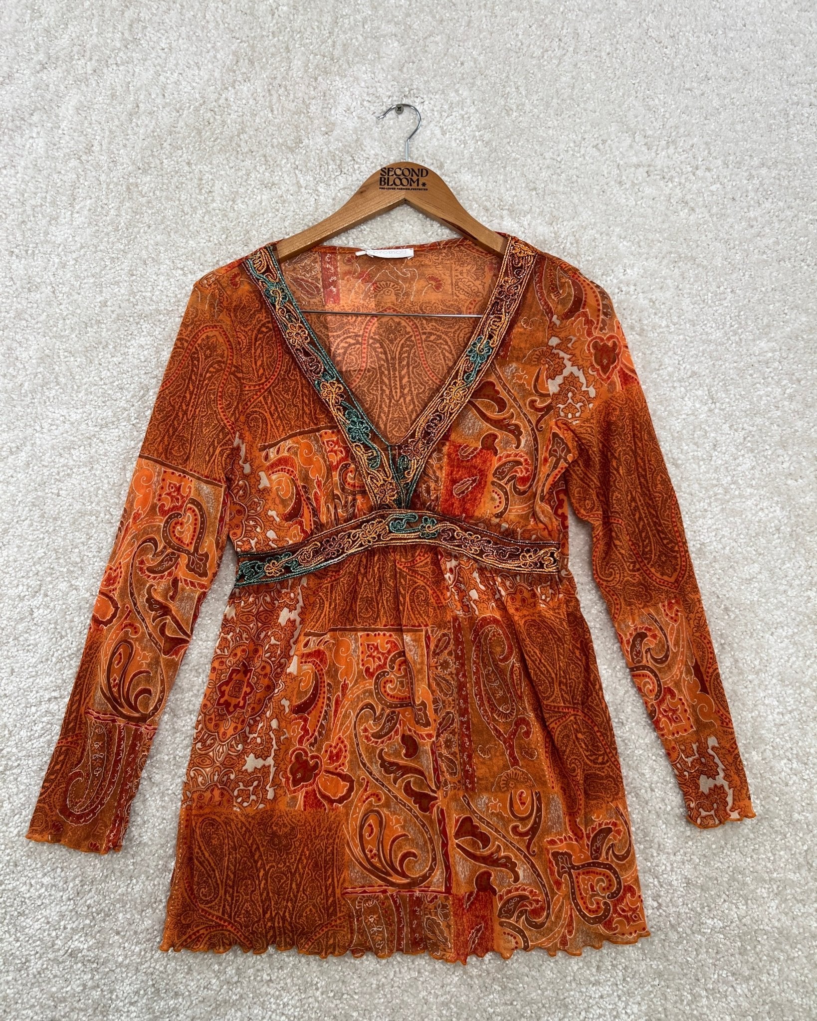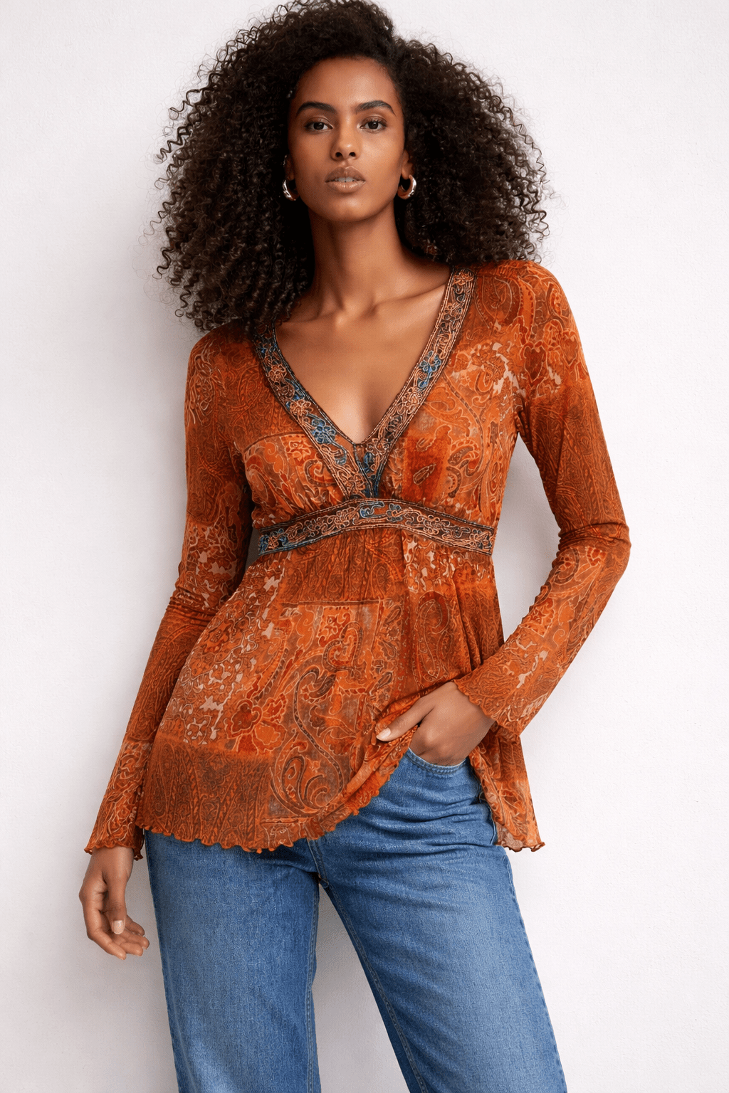 Bohemian Style Blouse in Burnt Orange-Size: L/XL