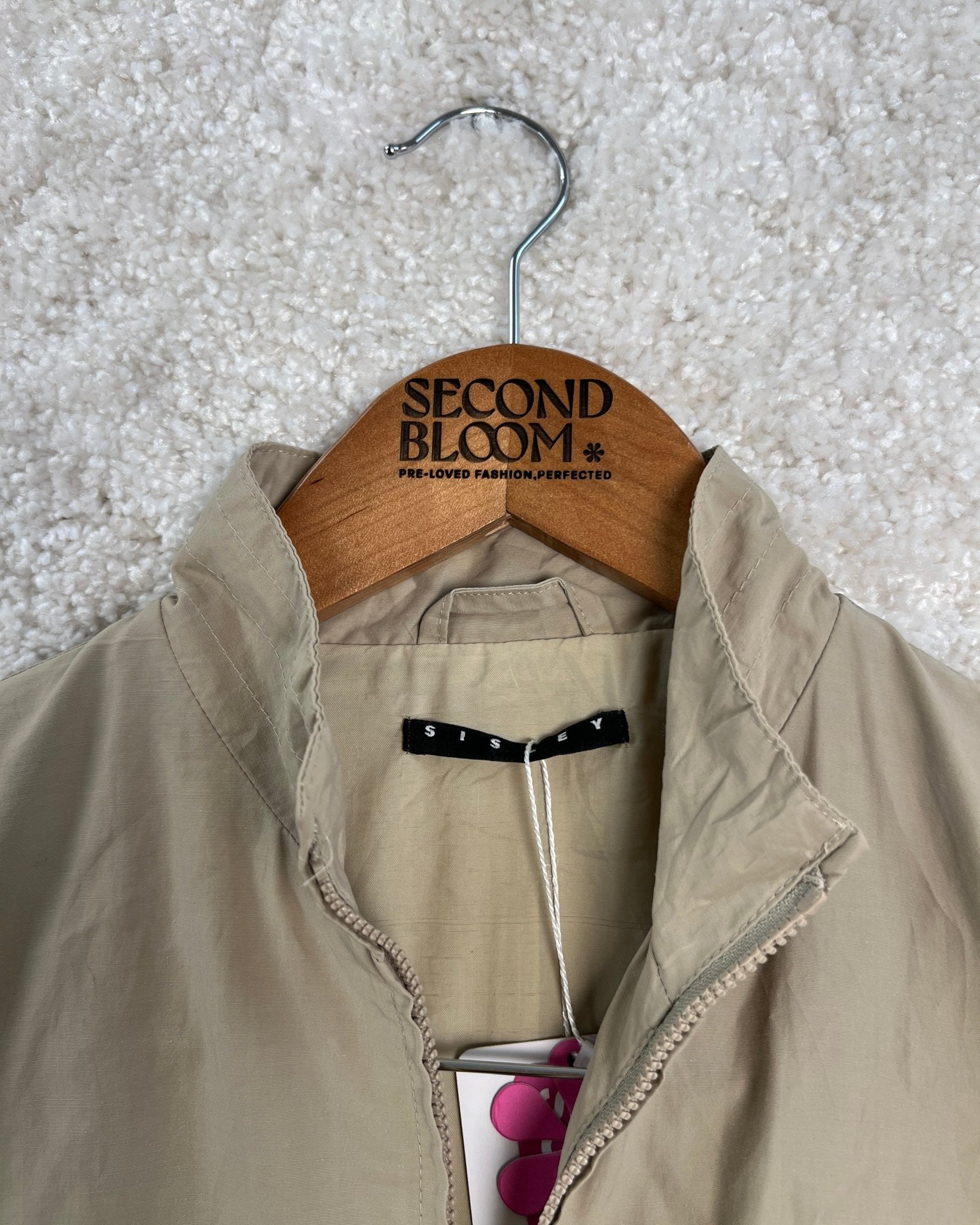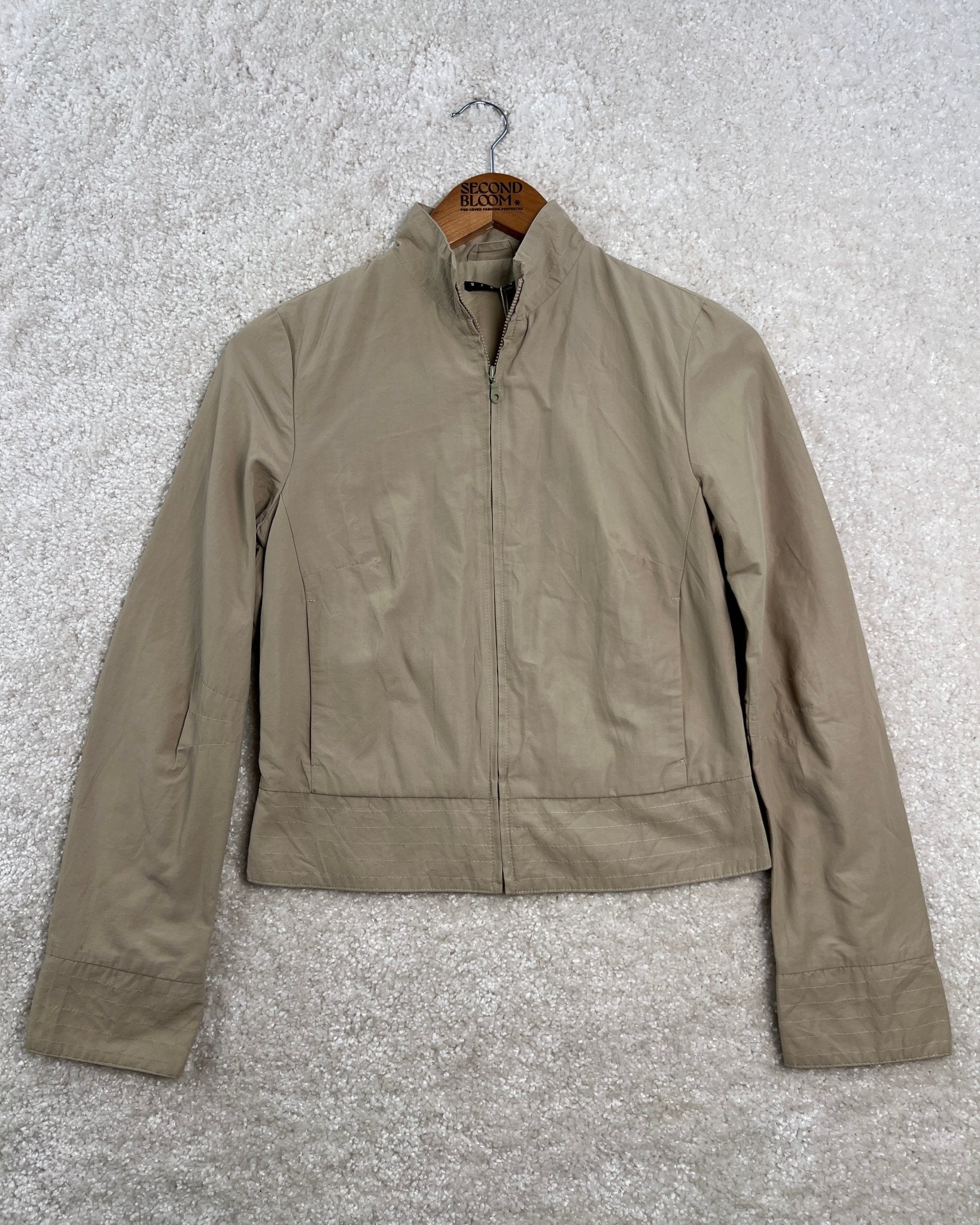 Cropped Cotton Blend Jacket in Warm Beige- Size: XS