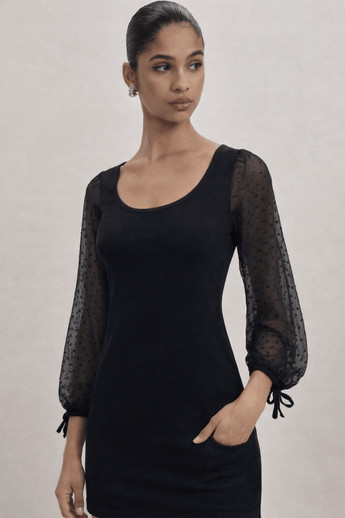 Fitted Mini Dress with Sheer Statement Sleeves- Size:XS/S