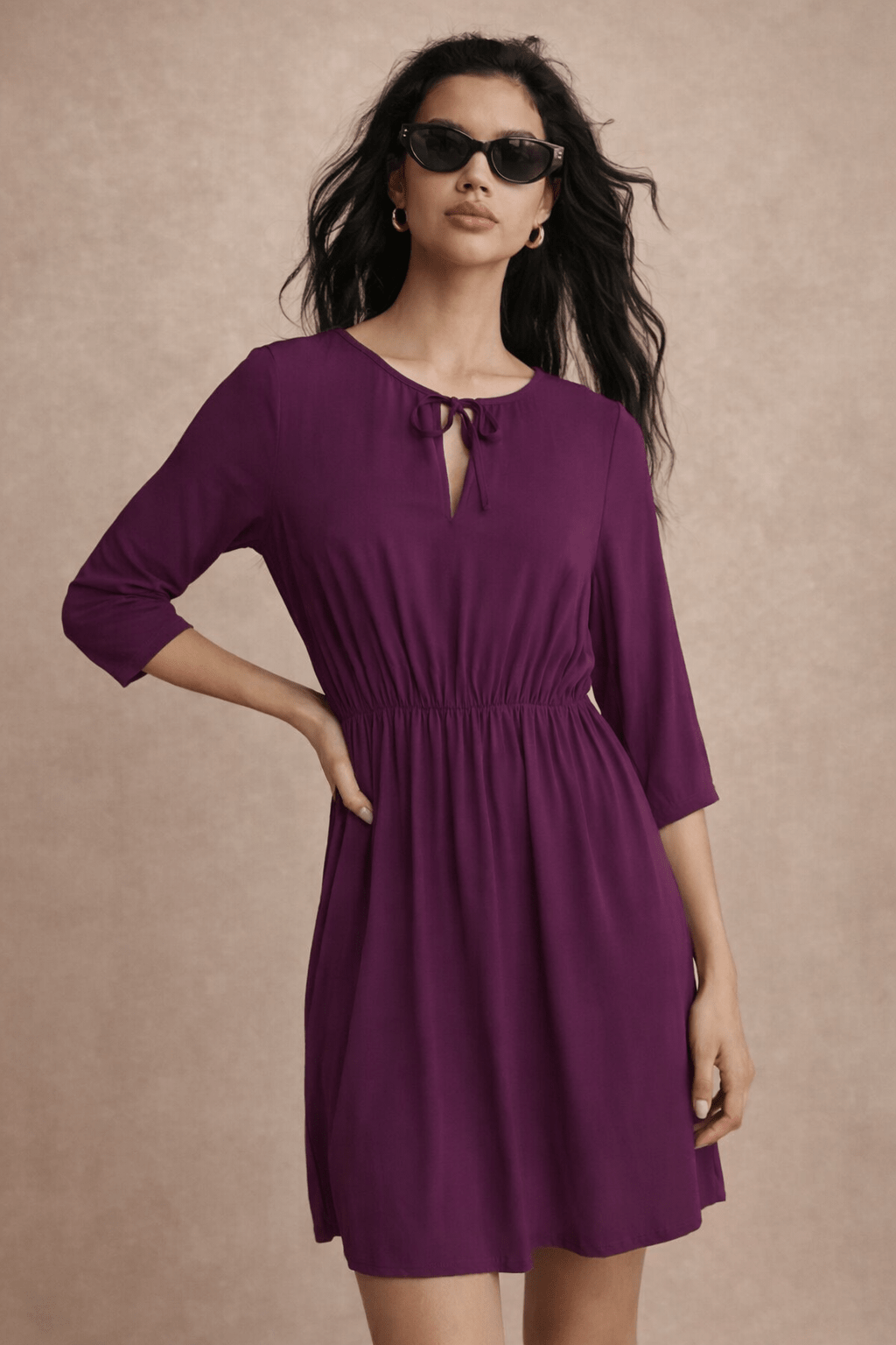 Viscose Waist Stretch Dress in Deep Purple- Size: M