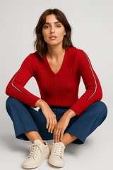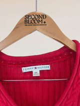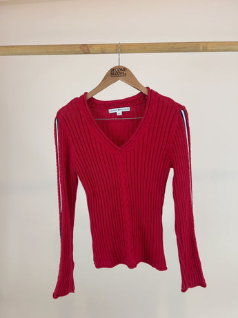 Cable Knit Sweater in Bold Red Hue - Size:S