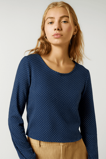 Navy Blue Blouse in Soft Viscose Fabric-Size: L