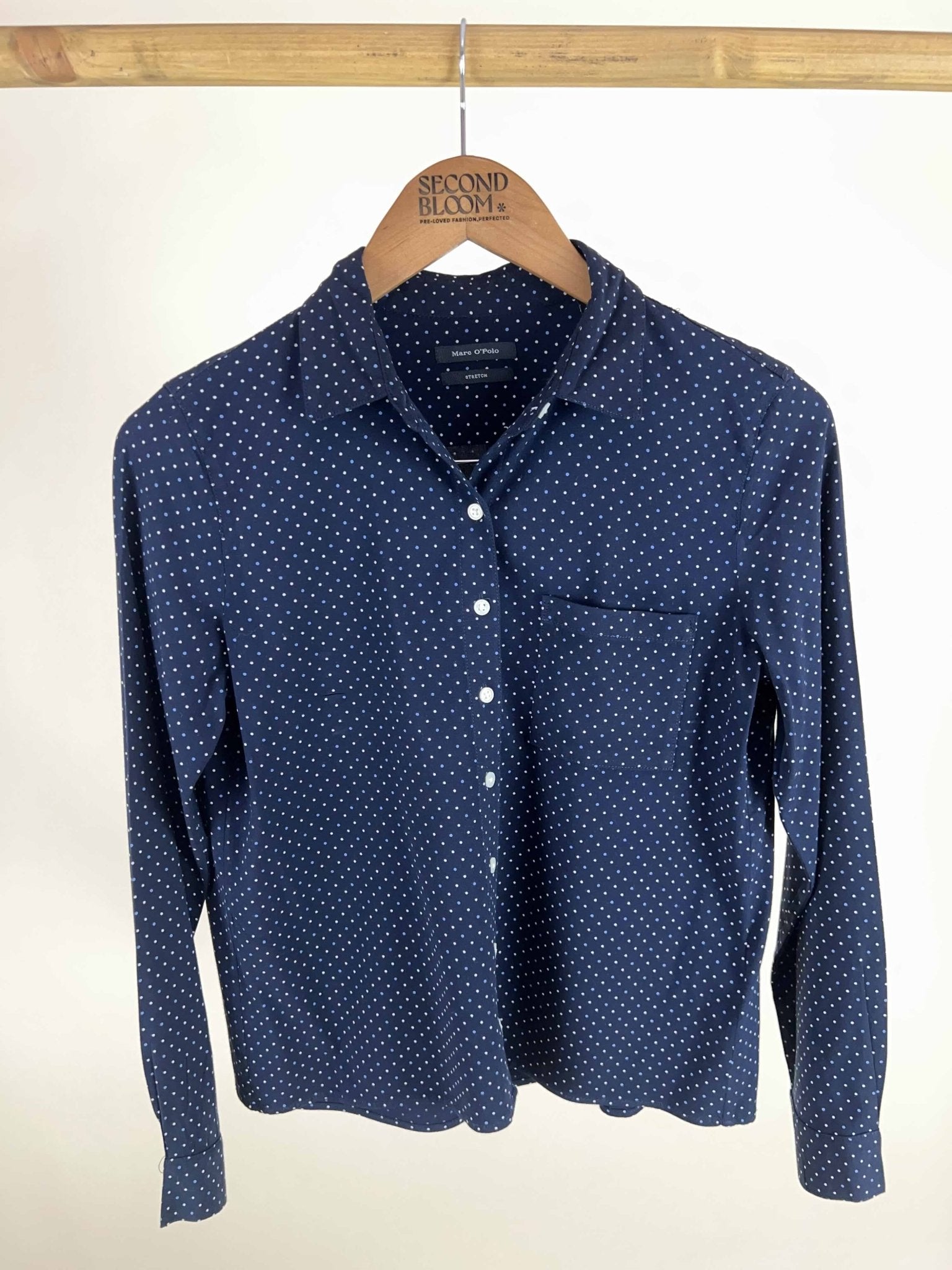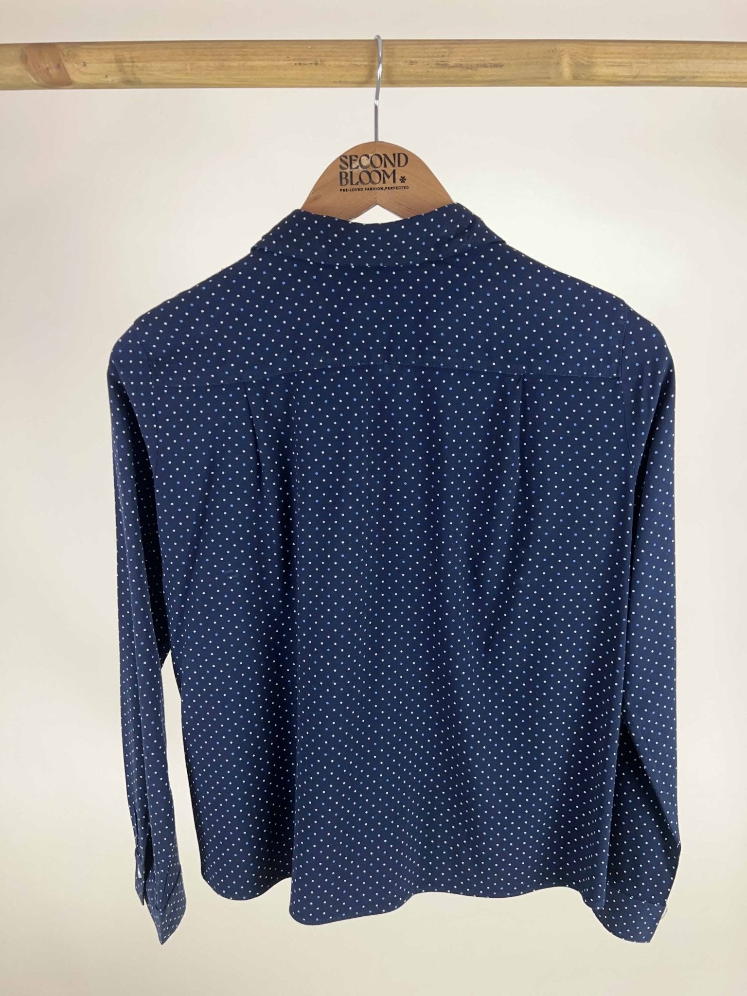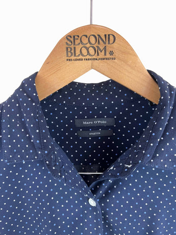 Polka Dot Navy Button Down Shirt- Size: S