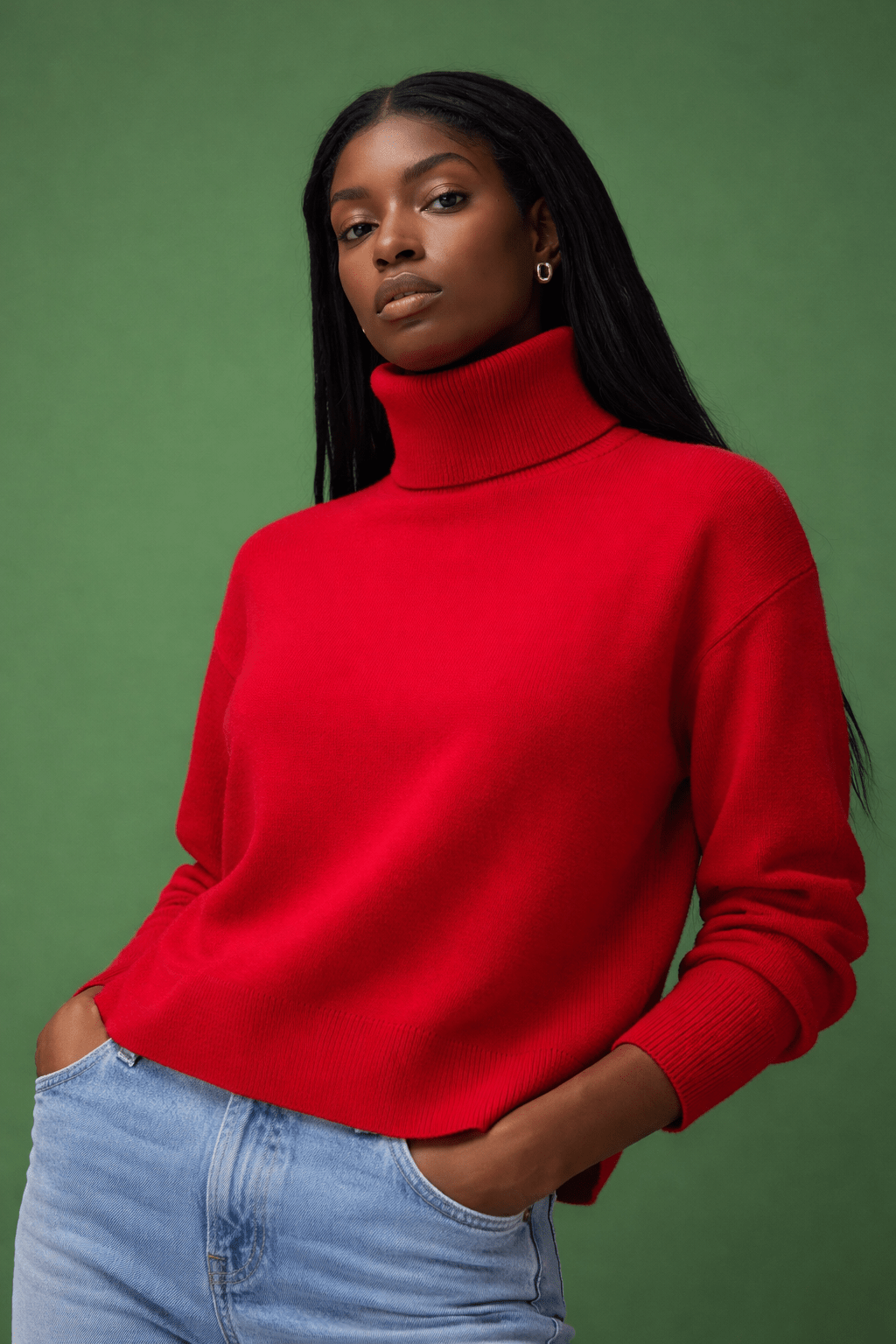 Bright Red Knitted Crew-neck Sweater in Viscose Blend- Size: XXL