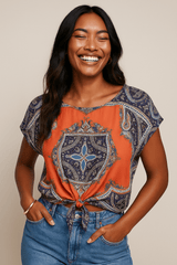 Scarf-inspired Bright Bohemian Blouse - Size: L