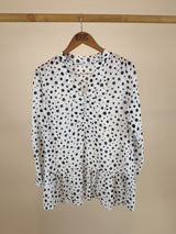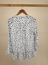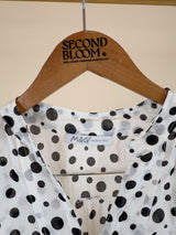 Silk Cotton Ruffled Blouse with Polka Dots - Size: XL