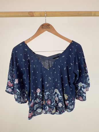 Viscose Cropped Top with Wide Bell Sleeves - Size: M