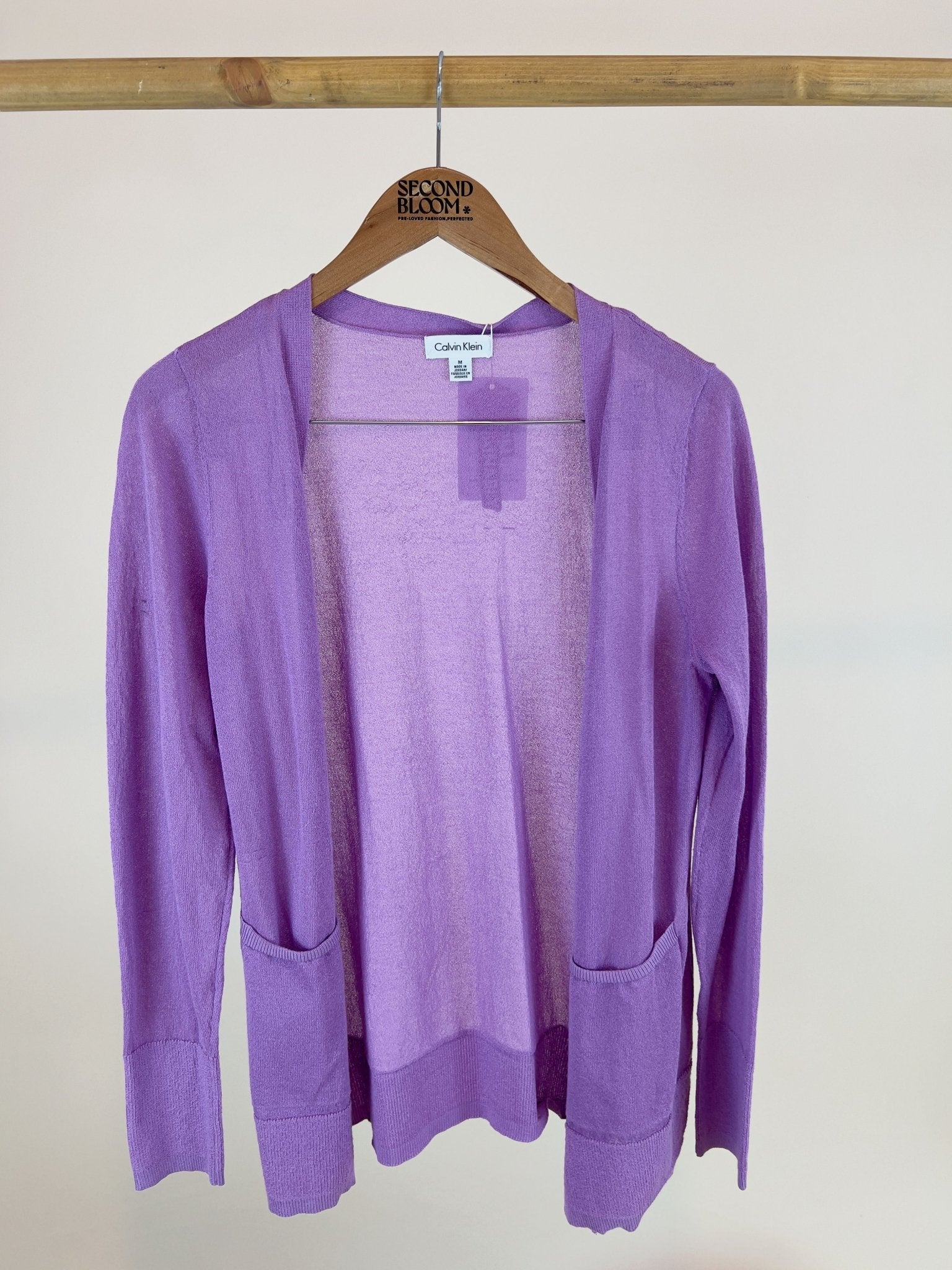Calvin Klein Purple Cardigan with Patch Pockets-Size: M