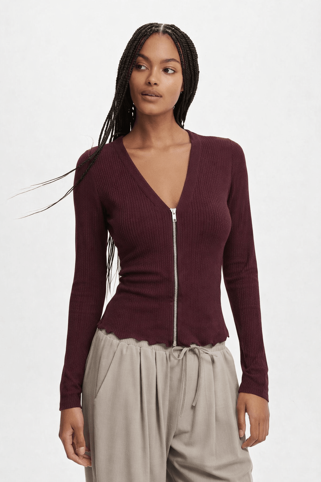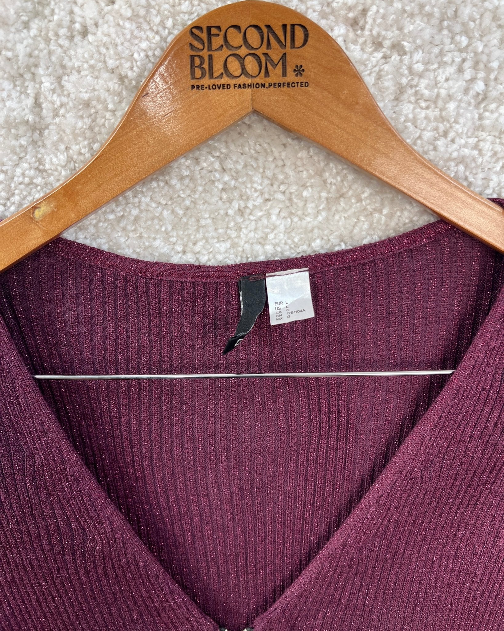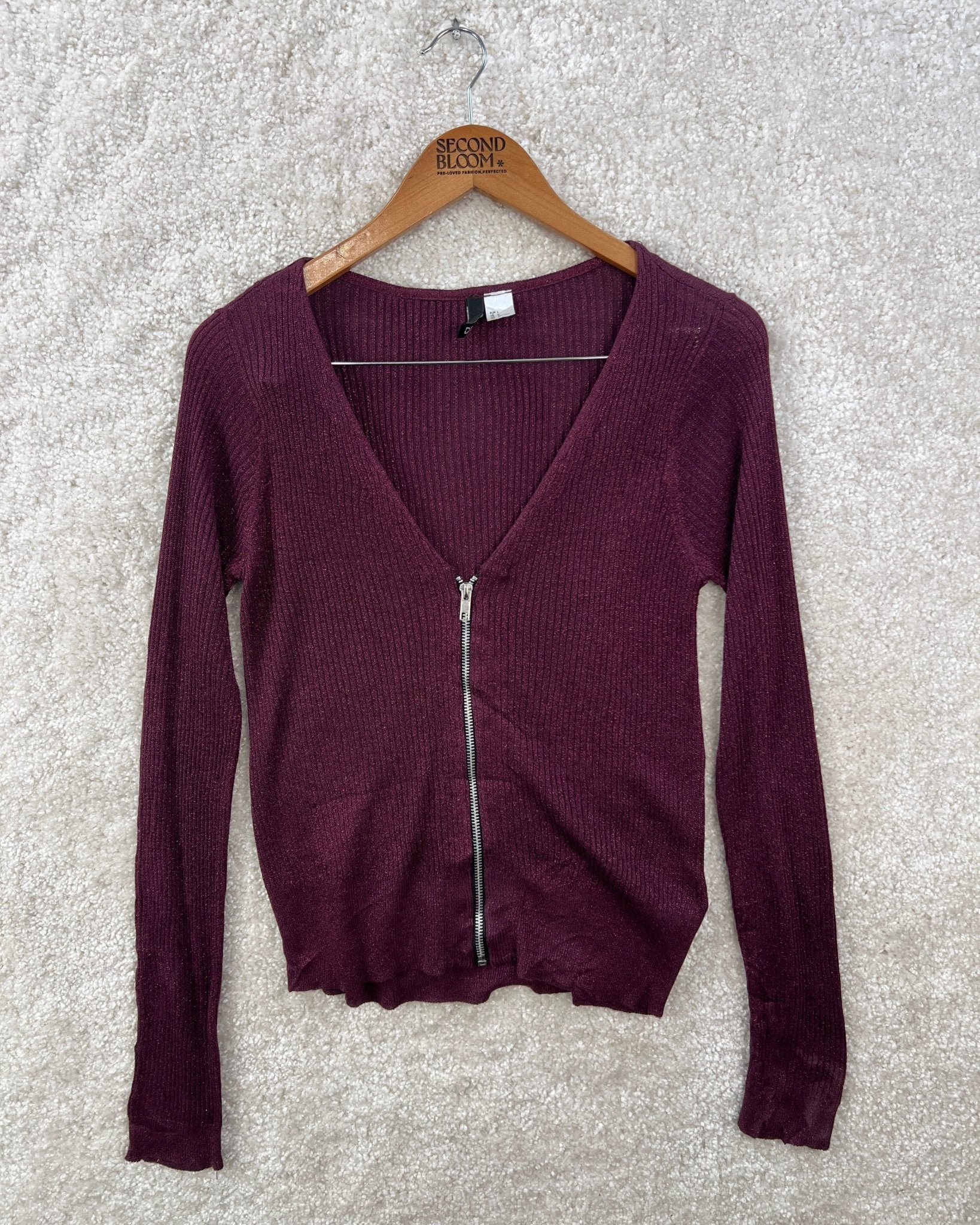 Shimmery Fine Ribbed Sweater in Deep Plum- Size: L