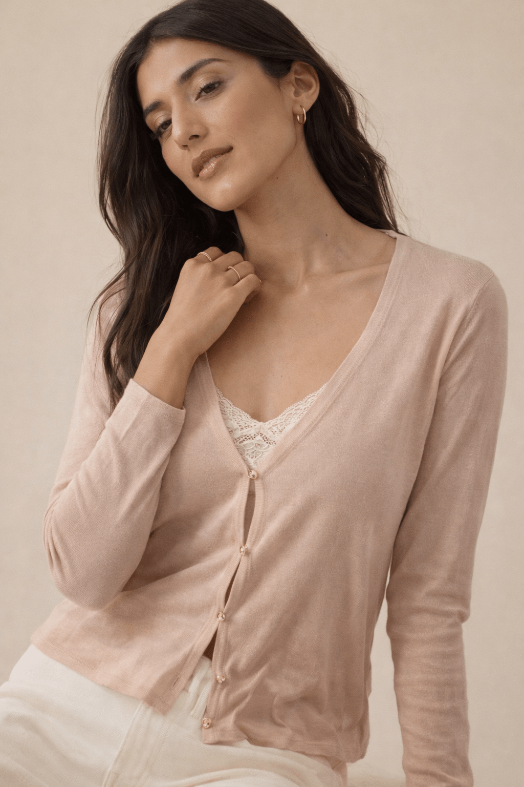 The Basic Cardigan in Rose Gold- Size: L