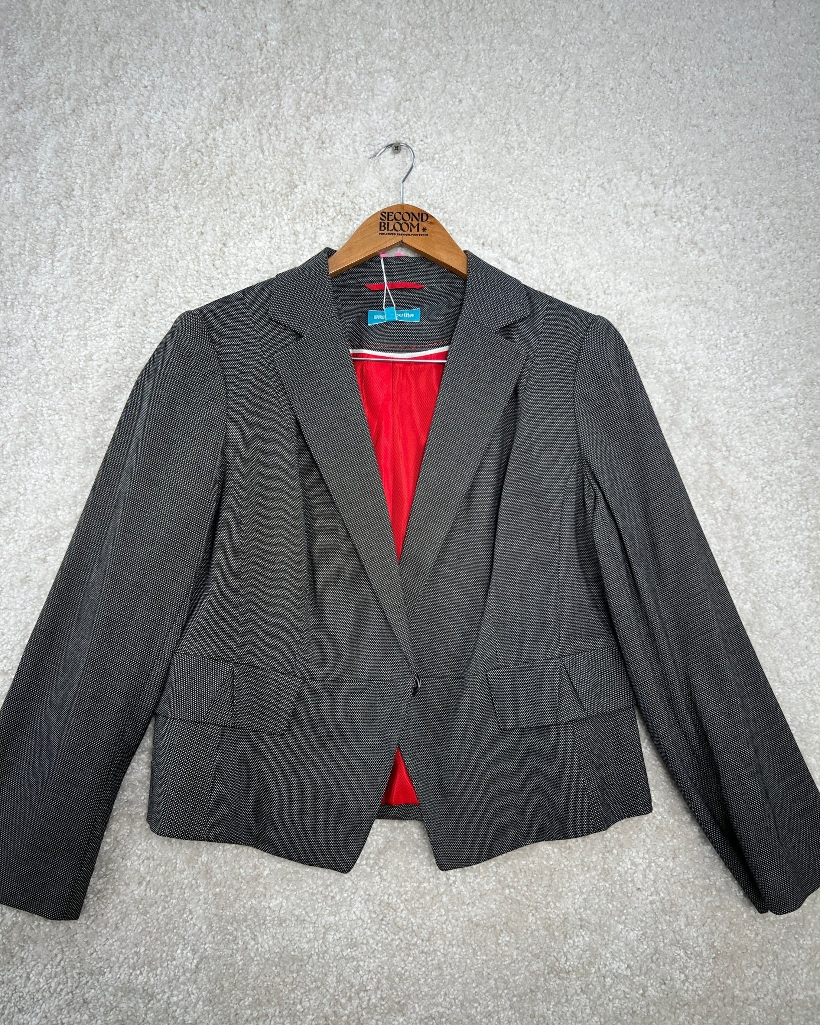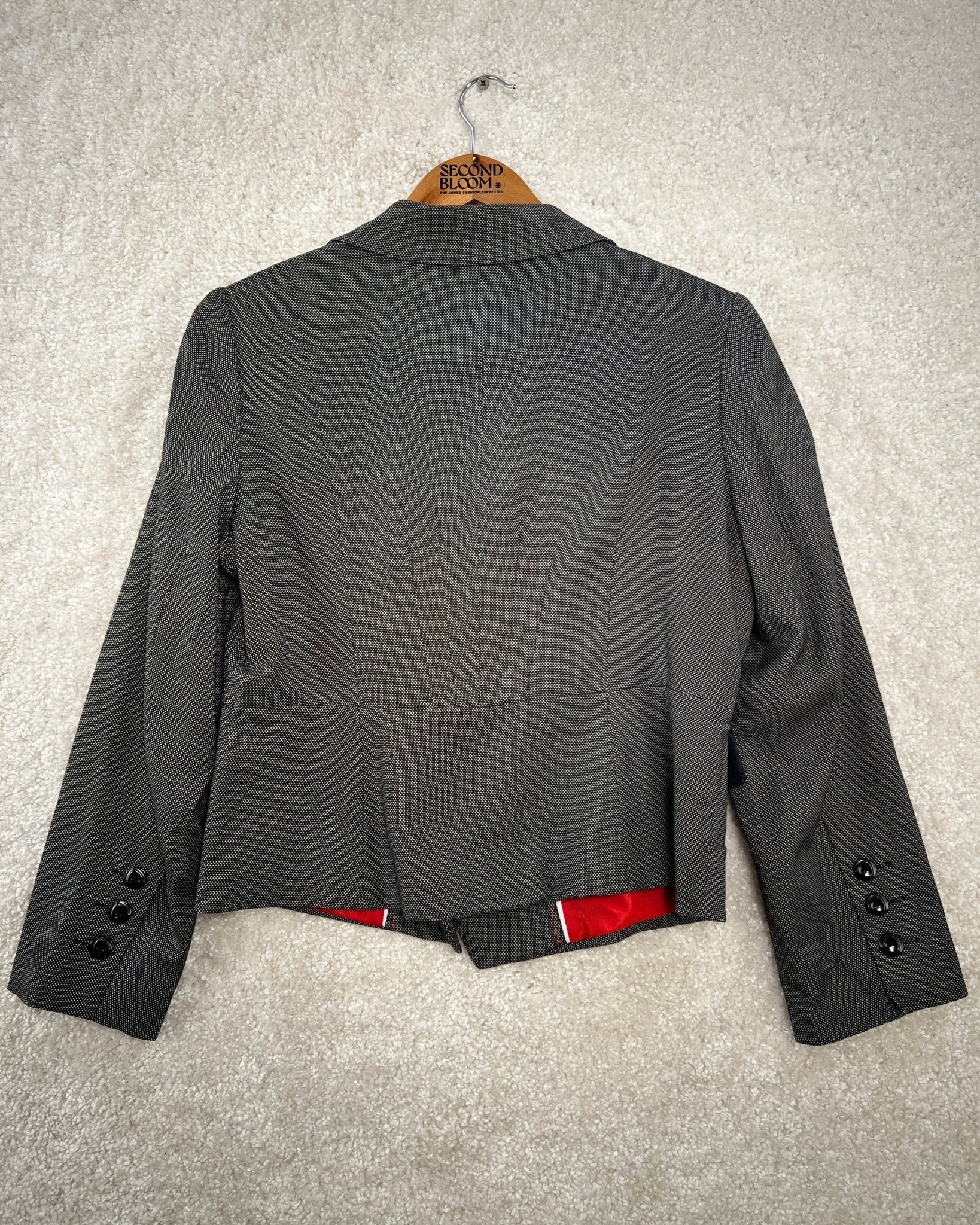 Cropped Tailored Blazer with Black and White Dots - Size: L