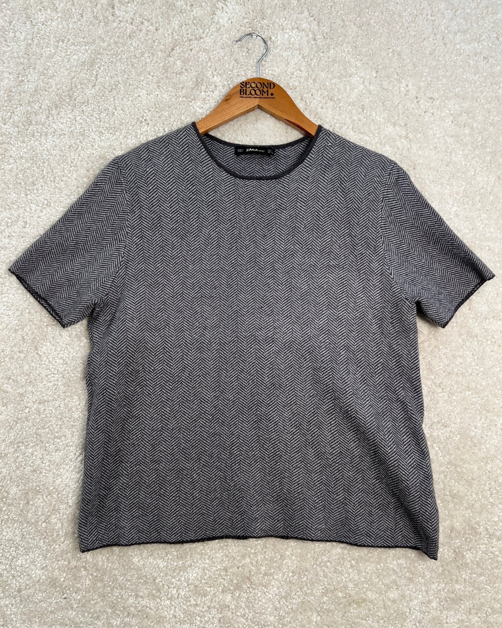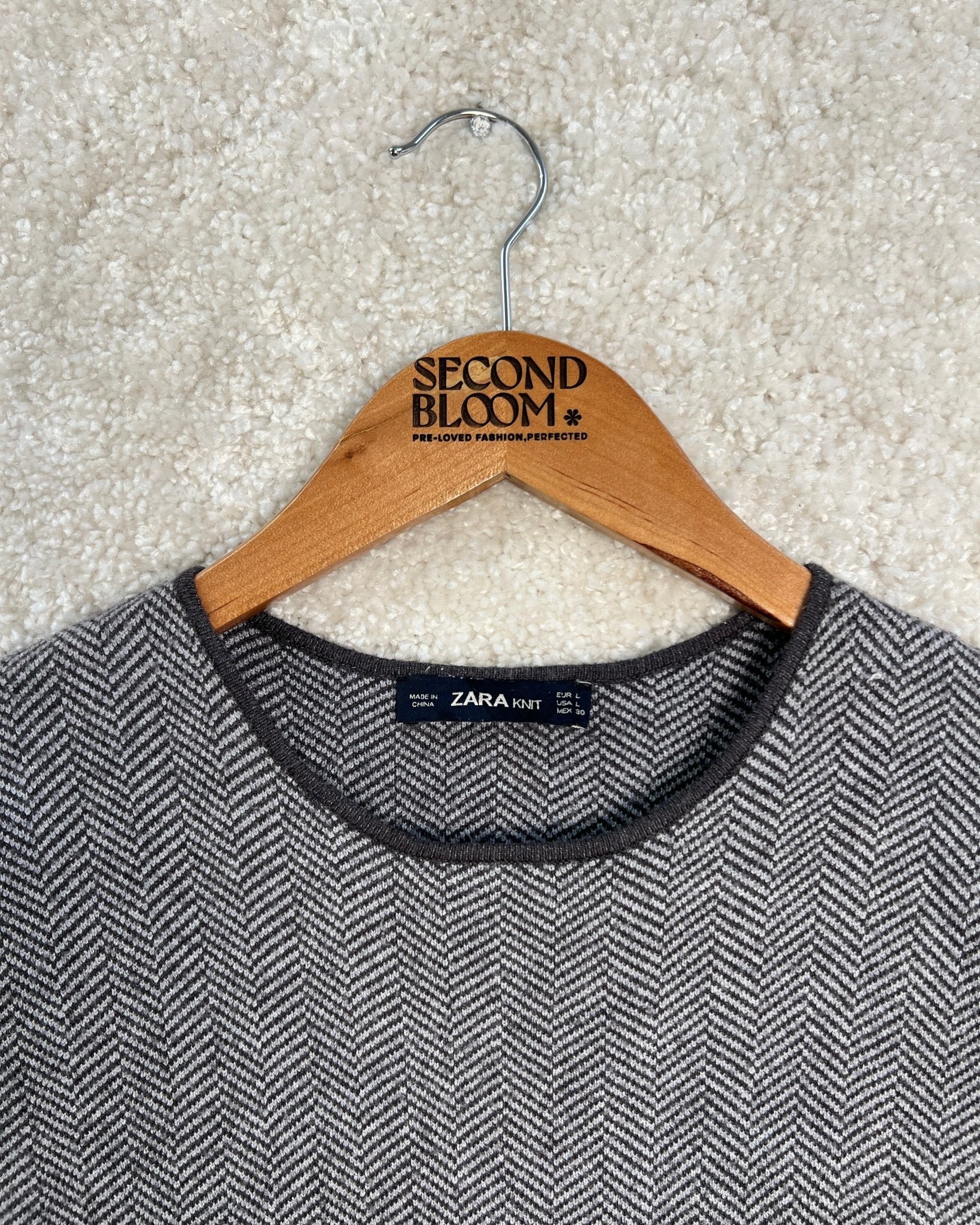 Zara Knit Sweater Herringbone Pattern in Grey- Size: L